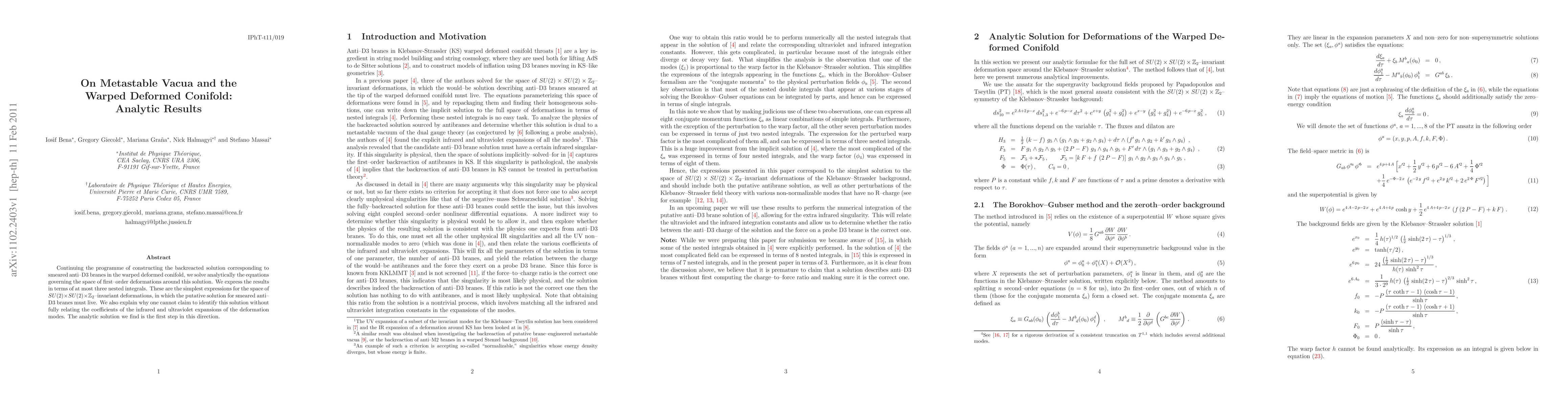 Researchers solve analytically equations governing space of first-order deformations in a warped deformed conifold, finding the simplest expressions for $SU(2) imes SU(2) imes oldsymbol{eta}_2$-invariant deformations.