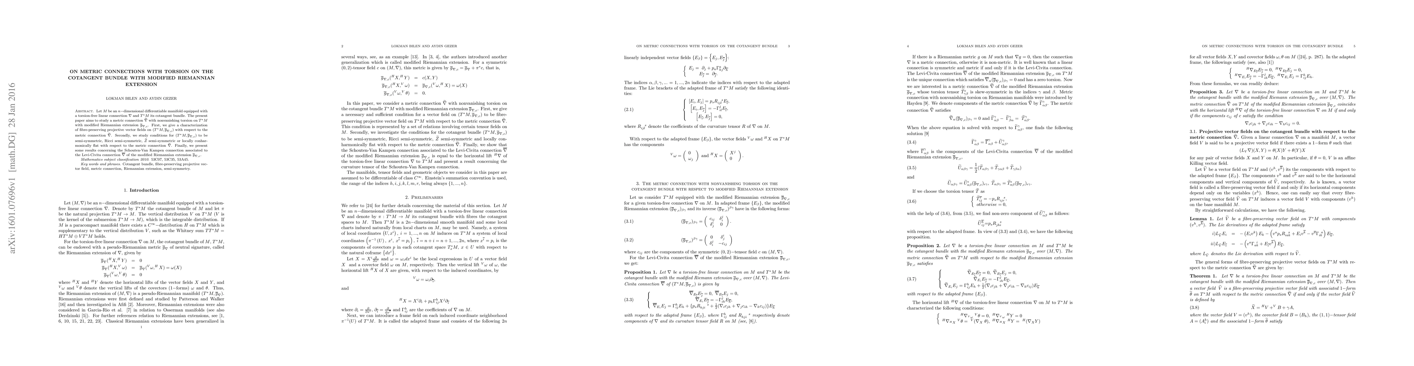This paper investigates a metric connection with torsion on the cotangent bundle of a differentiable manifold, focusing on the modified Riemannian extension. It characterizes fibre-preserving projective vector fields and explores semi-symmetry, Ricci semi-symmetry, $\widetilde{Z}$ semi-symmetry, and local conharmonic flatness conditions.