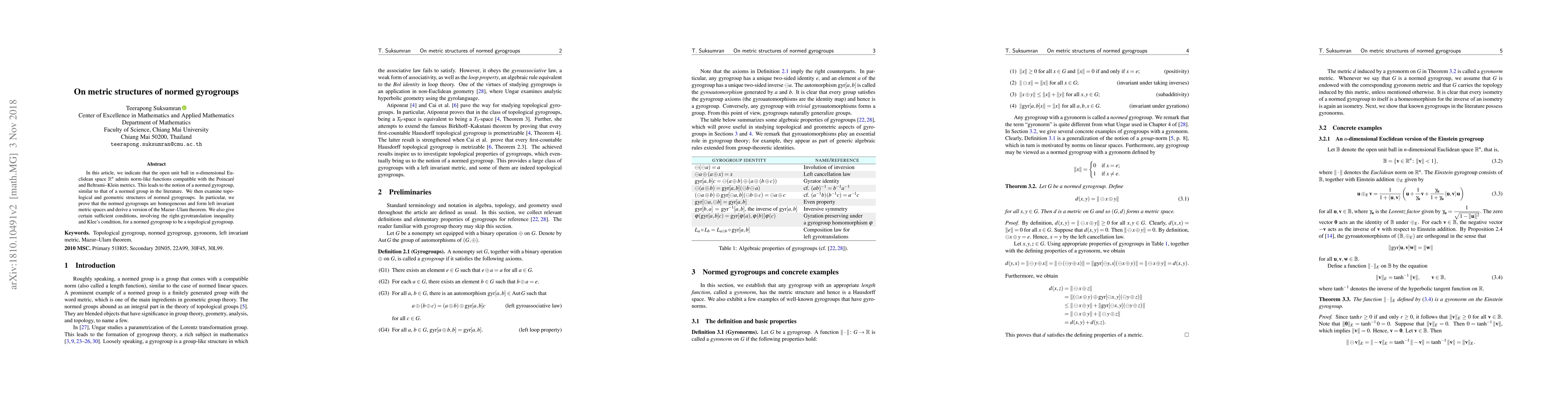 In this article, we indicate that the open unit ball in $n$-dimensional Euclidean space $\mathbb{R}^n$ admits norm-like functions compatible with the Poincar\'e and Beltrami$-$Klein metrics. This leads to the notion of a normed gyrogroup, similar to that of a normed group in the literature. We then examine topological and geometric structures of normed gyrogroups. In particular, we prove that the normed gyrogroups are homogeneous and form left invariant metric spaces and derive a version of the Mazur$-$Ulam theorem. We also give certain sufficient conditions, involving the right-gyrotranslation inequality and Klee's condition, for a normed gyrogroup to be a topological gyrogroup.
