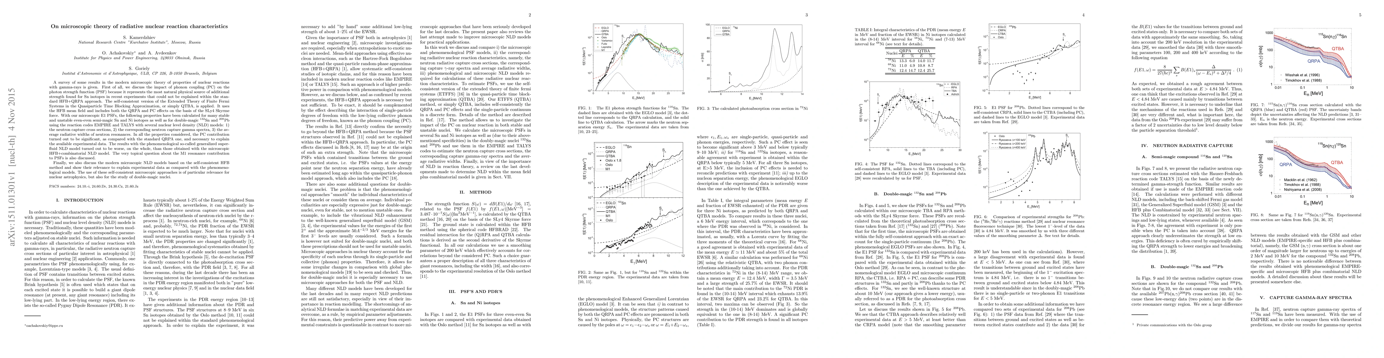 A survey of some results in the modern microscopic theory of properties of nuclear reactions with gamma-rays is given. First of all, we discuss the impact of phonon coupling (PC) on the photon strength function (PSF) because it represents the most natural physical source of additional strength found for Sn isotopes in recent experiments that could not be explained within the stan- dard HFB+QRPA approach. The self-consistent version of the Extended Theory of Finite Fermi Systems in the Quasiparticle Time Blocking Approximation, or simply QTBA, is applied. It uses the HFB mean field and includes both the QRPA and PC effects on the basis of the SLy4 Skyrme force. With our microscopic E1 PSFs, the following properties have been calculated for many stable and unstable even-even semi-magic Sn and Ni isotopes as well as for double-magic 132Sn and 208Pb using the reaction codes EMPIRE and TALYS with several nuclear level density (NLD) models: 1) the neutron capture cross sections, 2) the corresponding neutron capture gamma spectra, 3) the av- erage radiative widths of neutron resonances. In all the properties considered, the PC contribution turned out to be significant, as compared with the standard QRPA one, and necessary to explain the available experimental data. The results with the phenomenological so-called generalized super- fluid NLD model turned out to be worse, on the whole, than those obtained with the microscopic HFB+combinatorial NLD model. Finally, we also discuss the modern microscopic NLD models based on the self-consistent HFB method and show their relevance to explain experimental data as compared with the phenomeno- logical models. The use of these self-consistent microscopic approaches is of particular relevance for nuclear astrophysics, but also for the study of double-magic nuclei.