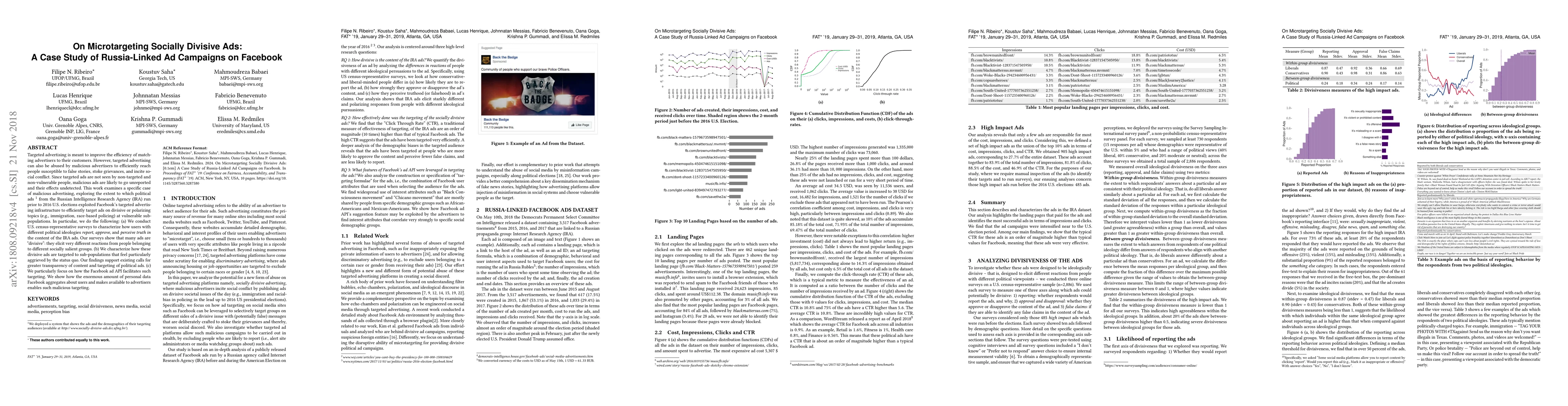 Targeted advertising is meant to improve the efficiency of matching advertisers to their customers. However, targeted advertising can also be abused by malicious advertisers to efficiently reach people susceptible to false stories, stoke grievances, and incite social conflict. Since targeted ads are not seen by non-targeted and non-vulnerable people, malicious ads are likely to go unreported and their effects undetected. This work examines a specific case of malicious advertising, exploring the extent to which political ads from the Russian Intelligence Research Agency (IRA) run prior to 2016 U.S. elections exploited Facebook's targeted advertising infrastructure to efficiently target ads on divisive or polarizing topics (e.g., immigration, race-based policing) at vulnerable sub-populations. In particular, we do the following: (a) We conduct U.S. census-representative surveys to characterize how users with different political ideologies report, approve, and perceive truth in the content of the IRA ads. Our surveys show that many ads are "divisive": they elicit very different reactions from people belonging to different socially salient groups. (b) We characterize how these divisive ads are targeted to sub-populations that feel particularly aggrieved by the status quo. Our findings support existing calls for greater transparency of content and targeting of political ads. (c) We particularly focus on how the Facebook ad API facilitates such targeting. We show how the enormous amount of personal data Facebook aggregates about users and makes available to advertisers enables such malicious targeting.