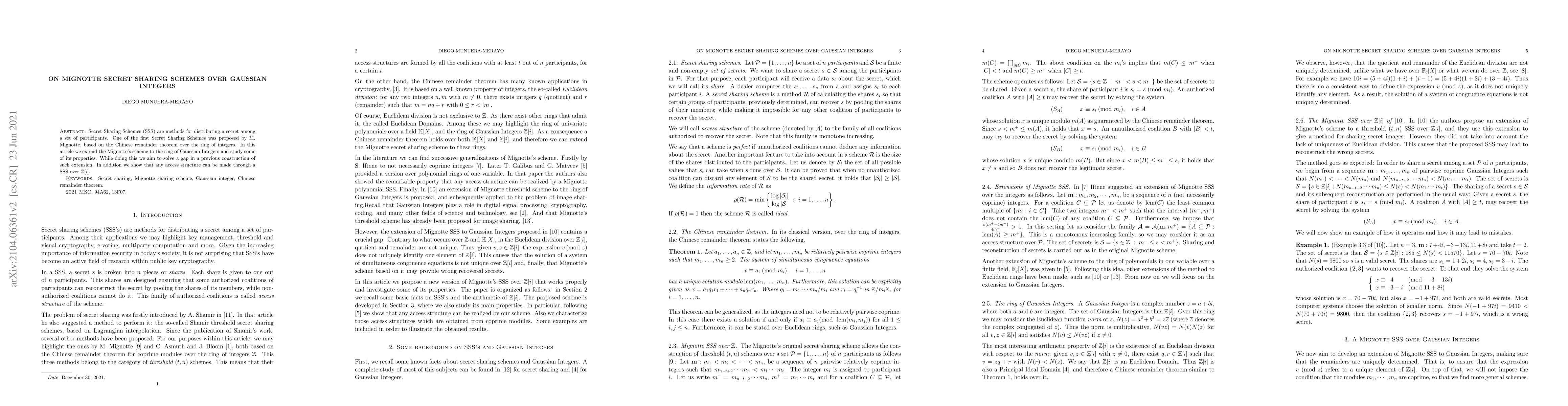 This paper extends Mignotte's Secret Sharing Schemes to the ring of Gaussian integers, addressing a gap in previous constructions, and demonstrates that any access structure can be realized through such schemes.