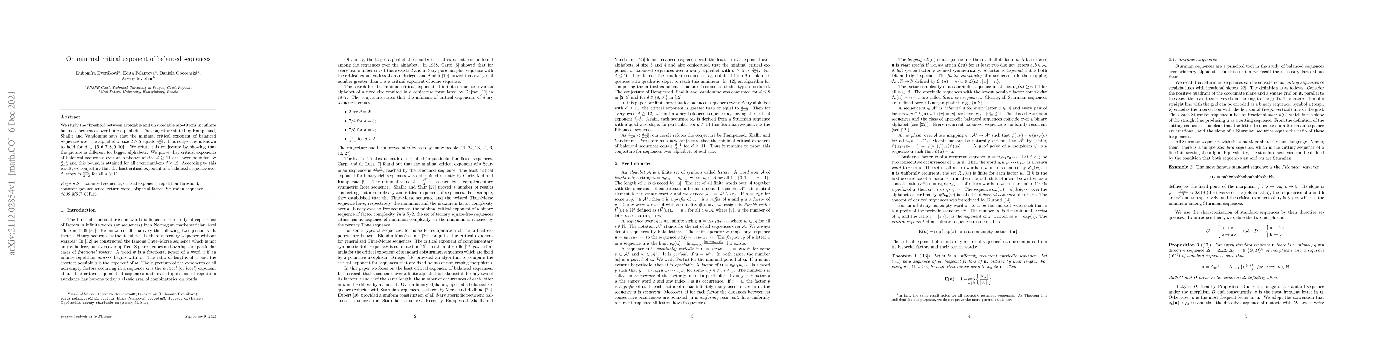 The paper introduces a novel approach to bounding the critical exponent of balanced sequences for larger alphabets, utilizing cylindric representations and properties of Pansiot words.