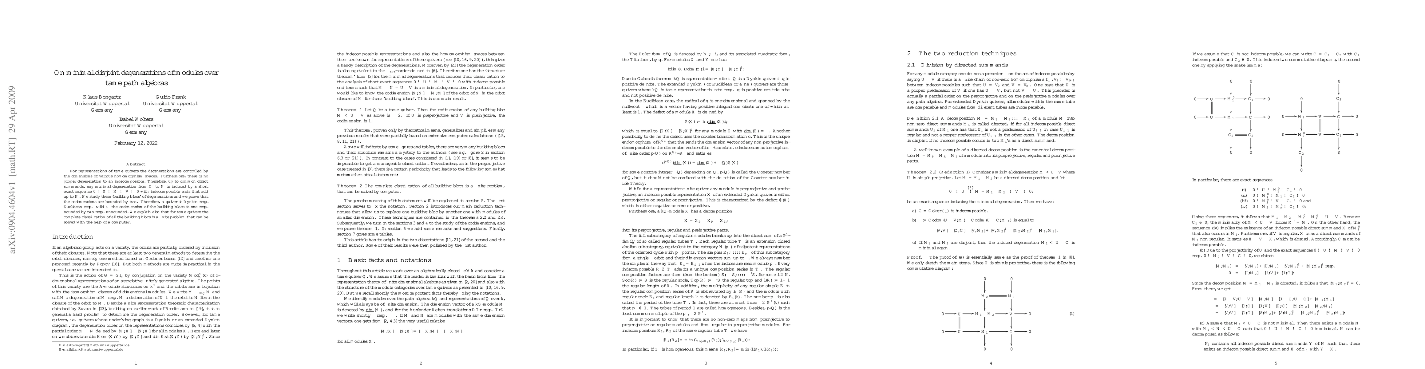 This paper investigates minimal disjoint degenerations in representations of tame quivers, proving that their codimensions are bounded by 2. It concludes that a quiver is Dynkin, Euclidean, or wild based on whether its codimensions are 1, bounded by 2, or unbounded, respectively, and notes that a complete classification for tame quivers is a finite, computer-solvable problem.