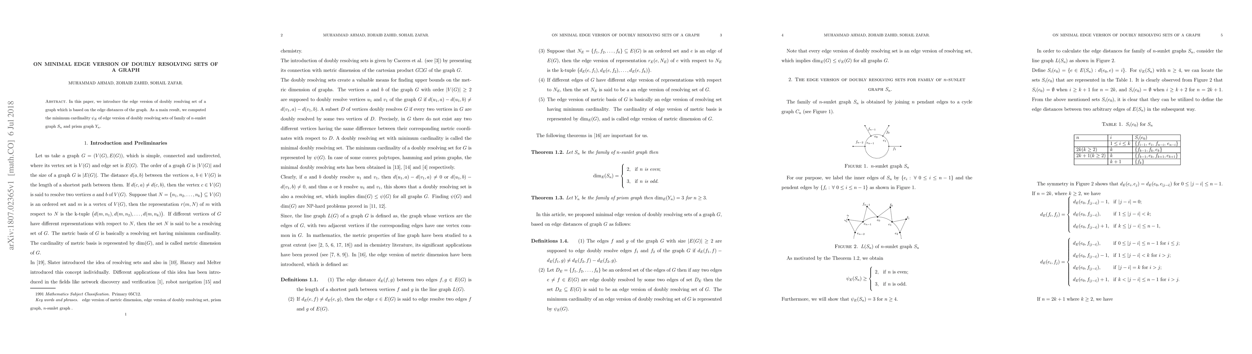 In this paper, we introduce the edge version of doubly resolving set of a graph which is based on the edge distances of the graph. As a main result, we computed the minimum cardinality $\psi_E$ of edge version of doubly resolving sets of family of $n$-sunlet graph $S_n$ and prism graph $Y_n$.