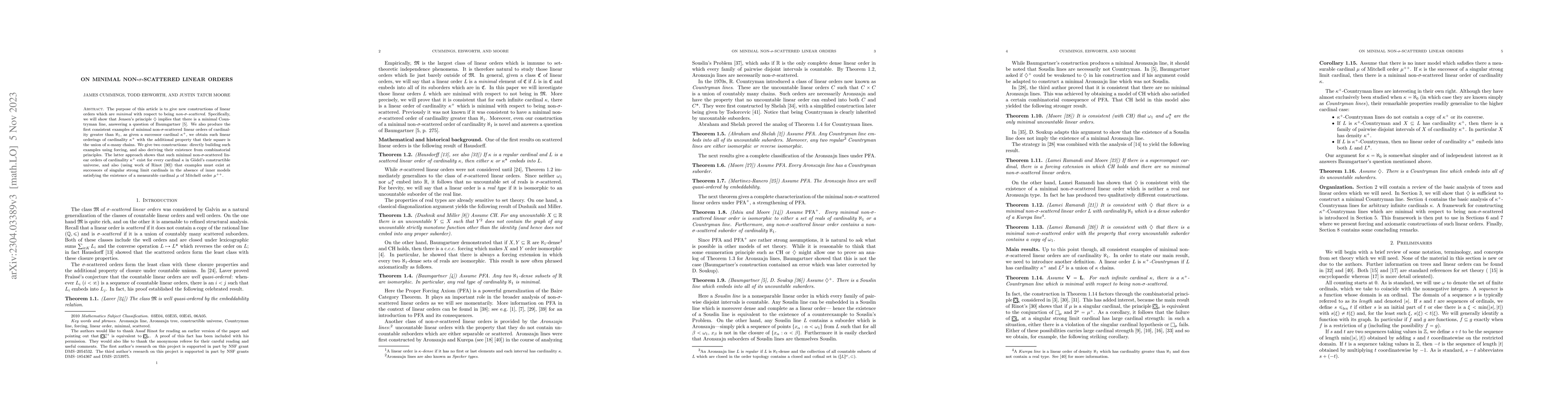 This paper constructs minimal non-$\sigma$-scattered linear orders, proving their existence via Jensen's principle $\diamondsuit$ and forcing techniques. It also demonstrates the existence of such orders of cardinality greater than $\aleph_1$ whose square is the union of $\kappa$-many chains.