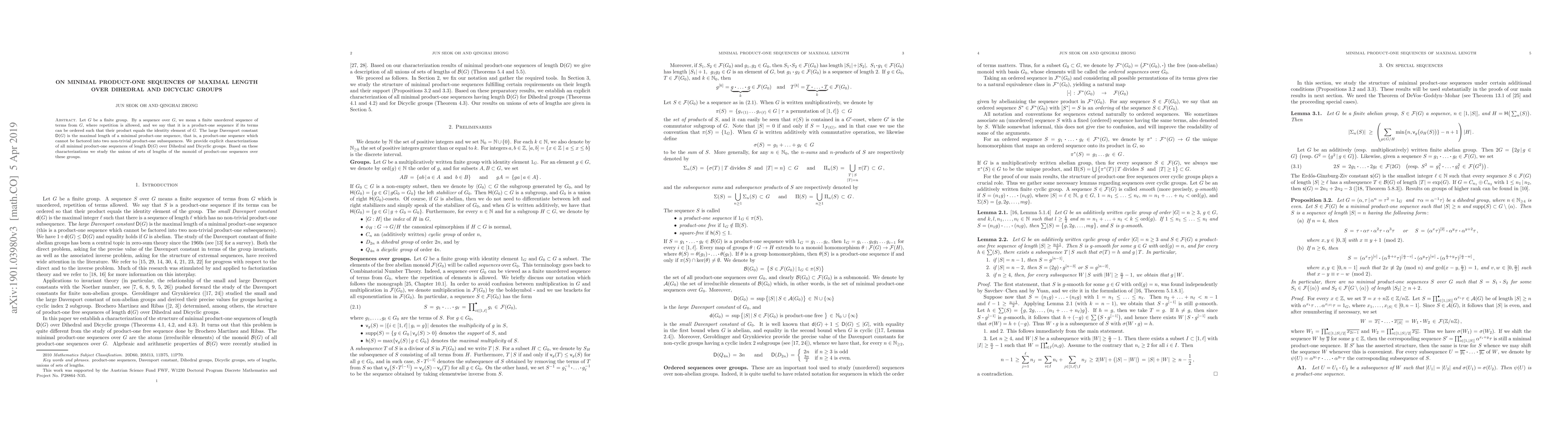 Summary: The paper provides explicit characterizations of minimal product-one sequences of maximal length in Dihedral and Dicyclic groups, and examines the unions of sets of lengths for the monoid of such sequences over these groups. The study focuses on the large Davenport constant and its implications for sequence factorization.
