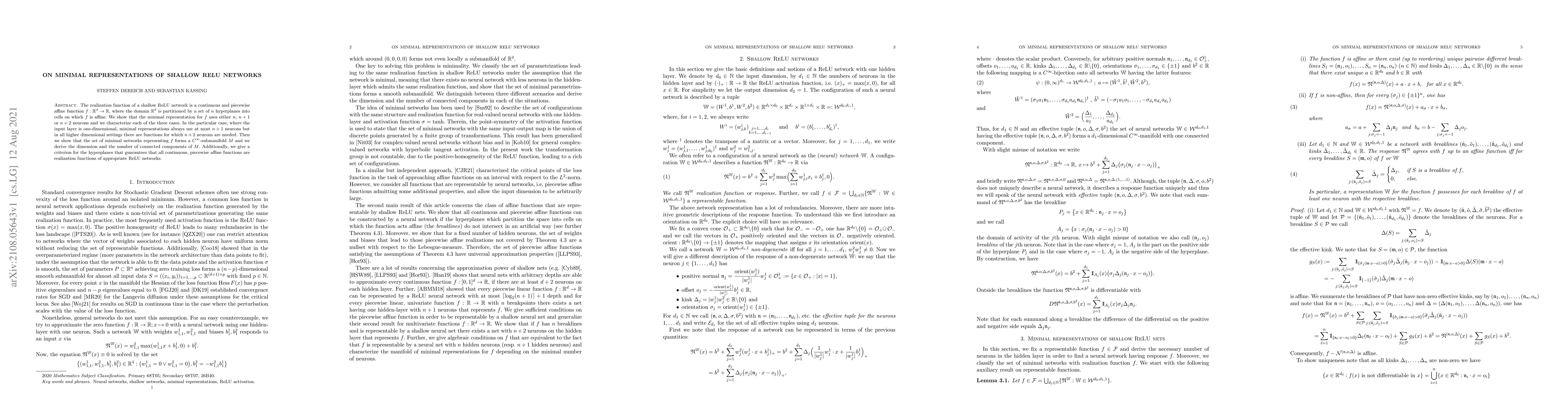 Researchers show that shallow ReLU networks can represent functions with minimal neurons using $n$, $n+1$, or $n+2$ neurons, and provide a criterion for hyperplanes to guarantee realizable functions.