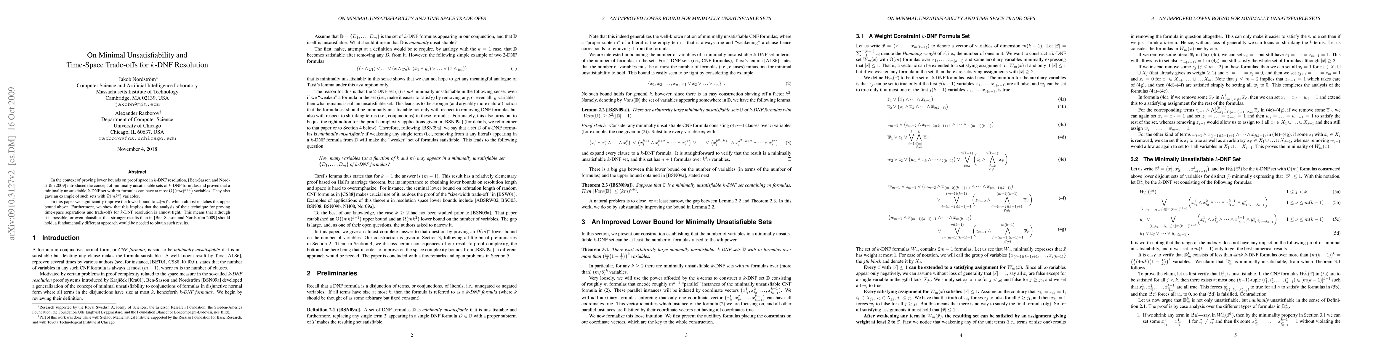 This paper improves the lower bound on the number of variables in minimally unsatisfiable k-DNF sets to Omega(m)^k, nearly matching the previously known upper bound. It also demonstrates that this result implies the tightness of existing techniques for time-space trade-offs in k-DNF resolution, suggesting a need for a fundamentally different approach to achieve stronger results.