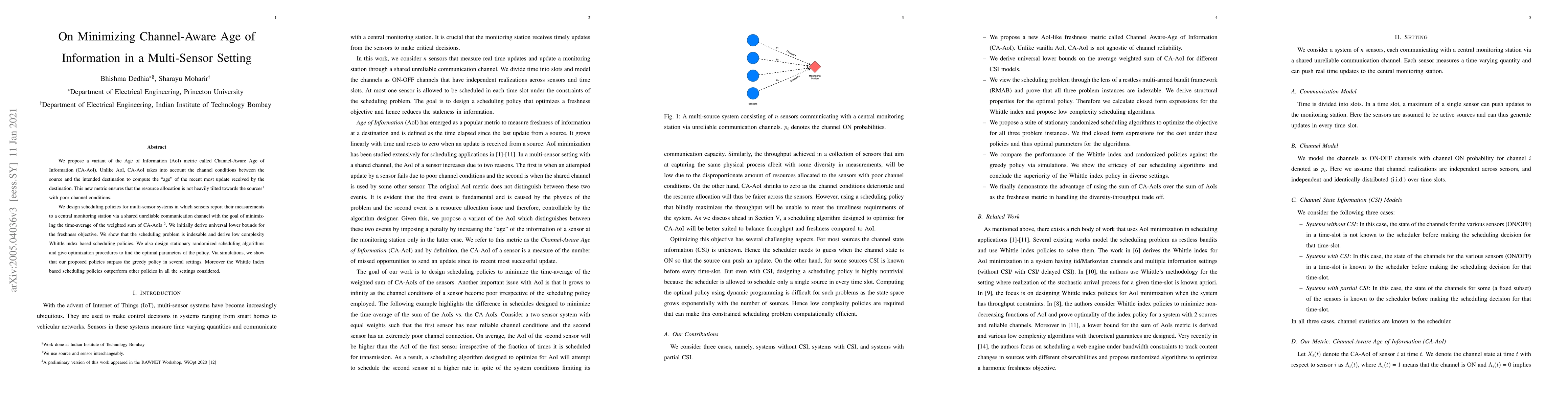 This paper introduces a Channel-Aware Age of Information (CA-AoI) metric that considers channel conditions to optimize resource allocation in multi-sensor systems. It proposes scheduling policies to minimize the time-average of weighted CA-AoIs, demonstrating superior performance over greedy policies and other methods in simulations.