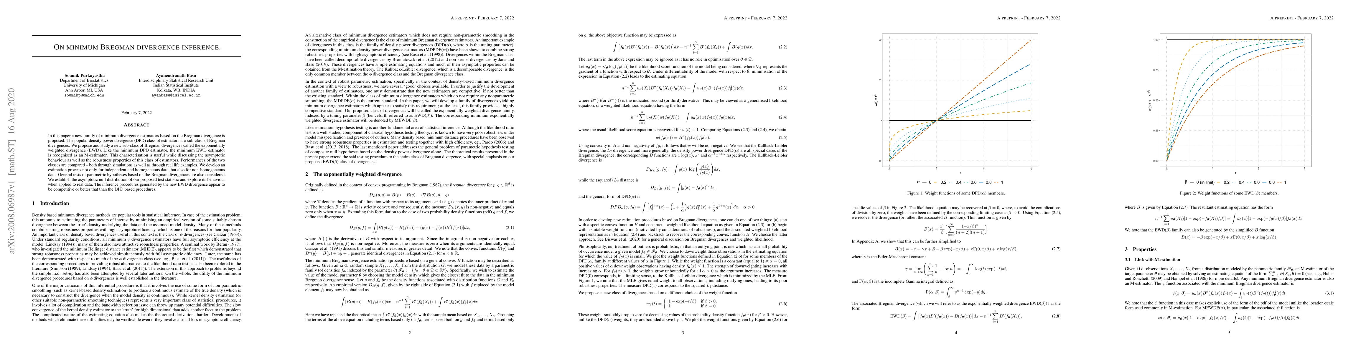 In this paper a new family of minimum divergence estimators based on the Bregman divergence is proposed. The popular density power divergence (DPD) class of estimators is a sub-class of Bregman divergences. We propose and study a new sub-class of Bregman divergences called the exponentially weighted divergence (EWD). Like the minimum DPD estimator, the minimum EWD estimator is recognised as an M-estimator. This characterisation is useful while discussing the asymptotic behaviour as well as the robustness properties of this class of estimators. Performances of the two classes are compared -- both through simulations as well as through real life examples. We develop an estimation process not only for independent and homogeneous data, but also for non-homogeneous data. General tests of parametric hypotheses based on the Bregman divergences are also considered. We establish the asymptotic null distribution of our proposed test statistic and explore its behaviour when applied to real data. The inference procedures generated by the new EWD divergence appear to be competitive or better that than the DPD based procedures.