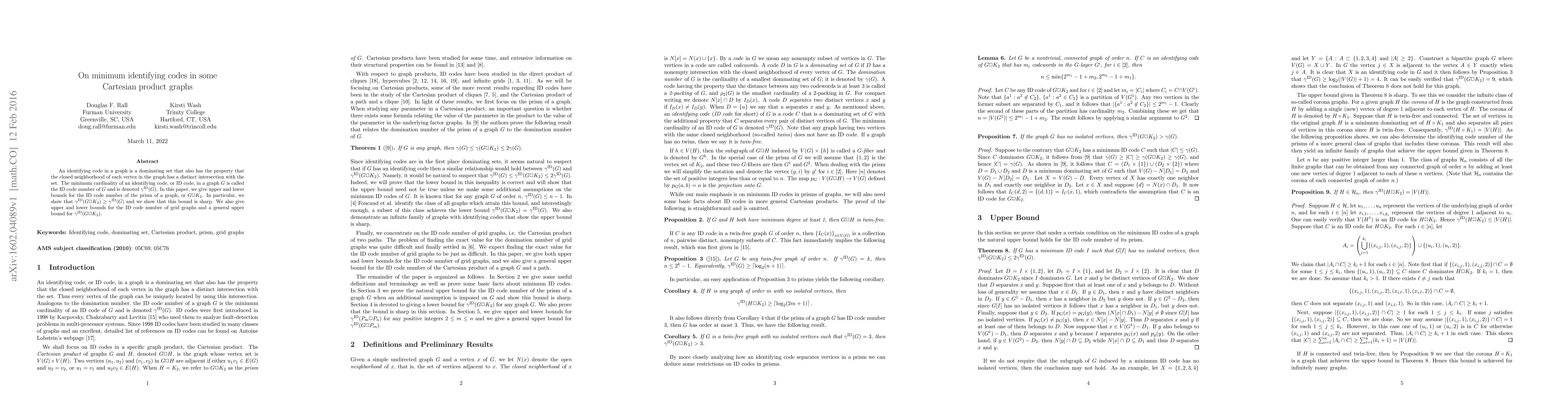 This paper establishes bounds for identifying codes in Cartesian product graphs, showing that the minimum size of an identifying code in a prism graph is at least as large as in its base graph, with potential upper and lower limits.