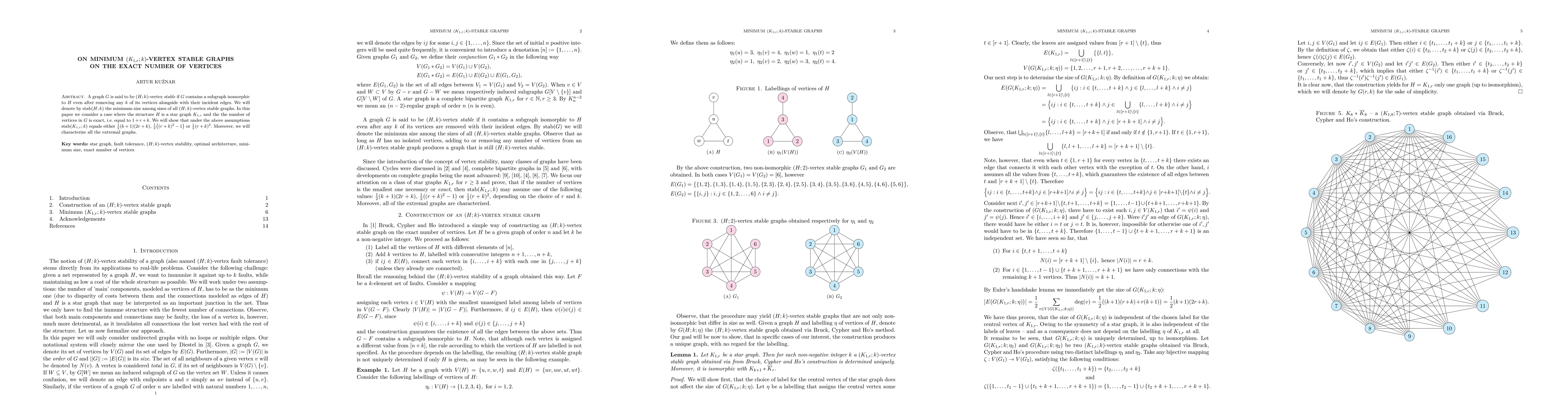 A graph $ G $ is said to be $ (H;k) $-vertex stable if $ G $ contains a~subgraph isomorphic to $ H $ even after removing any $ k $ of its vertices alongside with their incident edges. We will denote by $ \text{stab}(H;k) $ the minimum size among sizes of all $ (H;k) $-vertex stable graphs. In this paper we consider a~case where the structure $ H $ is a~star graph $ K_{1,r} $ and the the number of vertices in $ G $ is exact, \ie equal to $ 1 + r + k $. We will show that under the above assumptions $ \text{stab}(K_{1,r};k) $ equals either $ \frac{1}{2}(k + 1)(2r + k) $, $ \frac{1}{2}\big((r + k)^{2} - 1\big) $ or $ \frac{1}{2}(r + k)^{2} $. Moreover, we will characterize all the extremal graphs.
