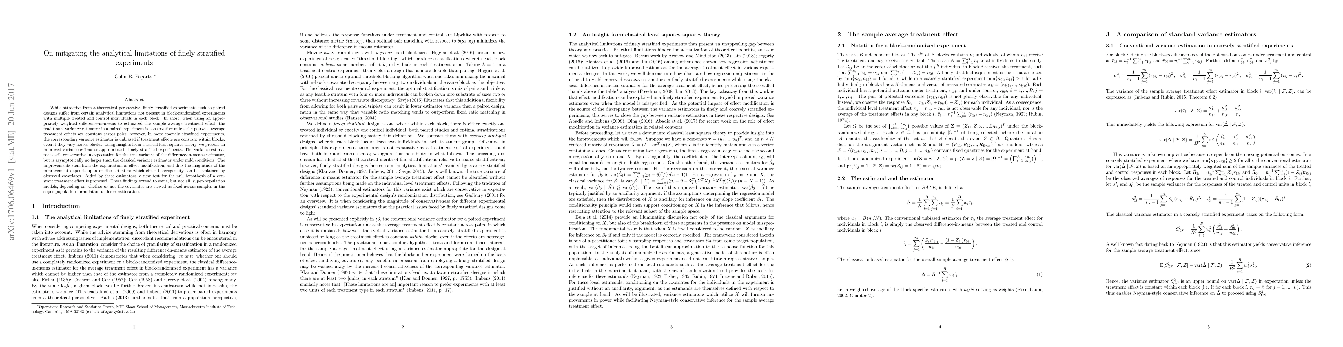 This paper proposes an improved variance estimator for finely stratified experiments like paired designs, addressing their analytical limitations compared to block-randomized experiments. The new estimator is asymptotically no larger than traditional methods under mild conditions and aids in testing the null hypothesis of a constant treatment effect.