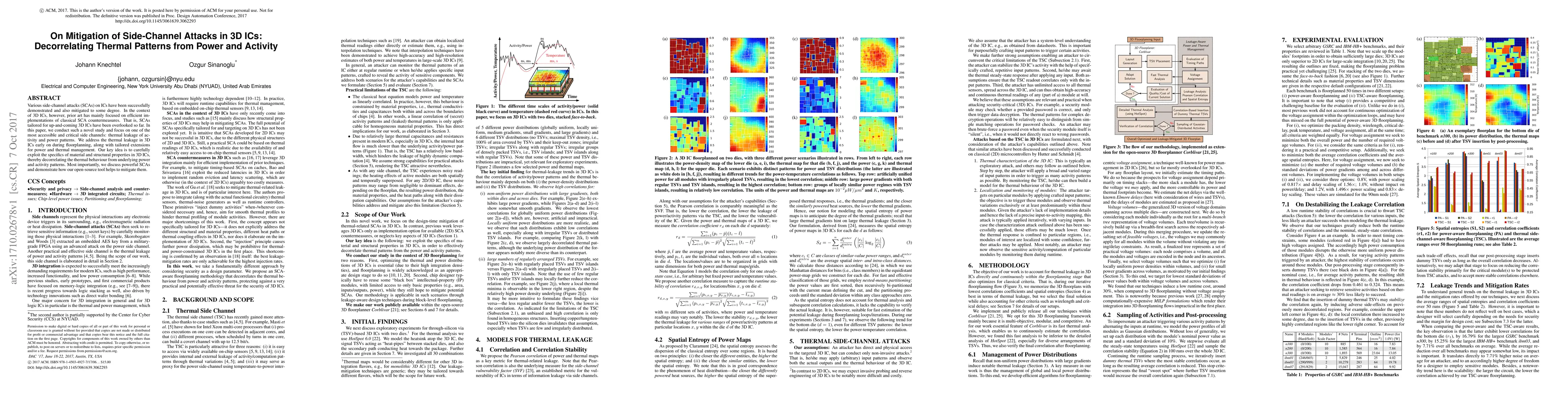 This paper explores novel methods to mitigate side-channel attacks in 3D ICs by decorrelating thermal leakage patterns from power and activity. It introduces tailored countermeasures during floorplanning, leveraging 3D IC structural properties to enhance thermal management.