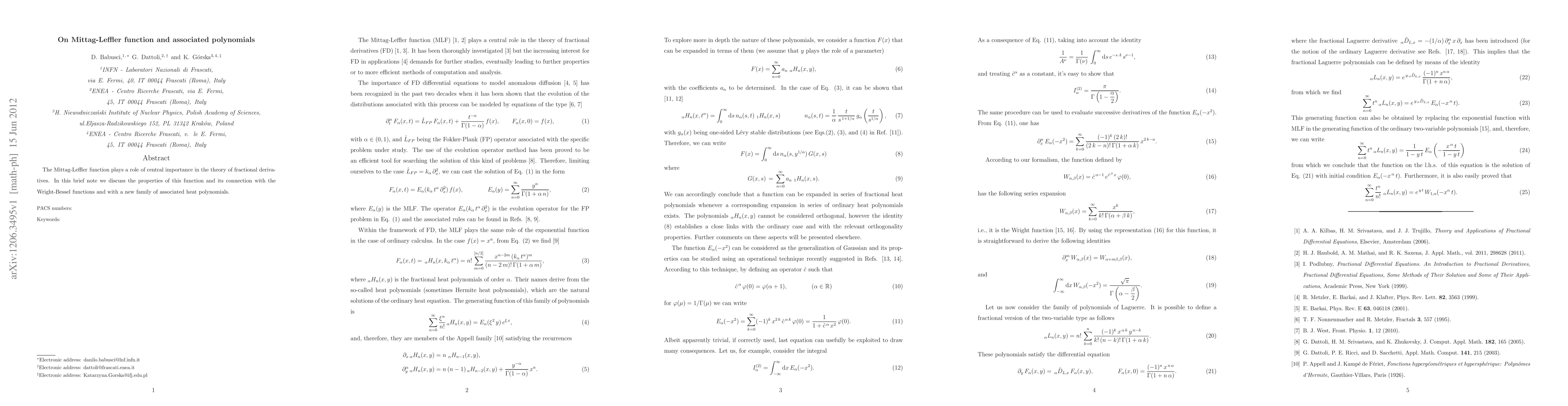 Summary: This paper explores the properties of the Mittag-Leffler function, emphasizing its significance in fractional derivatives, and investigates its relationships with Wright-Bessel functions and a newly identified family of associated heat polynomials.