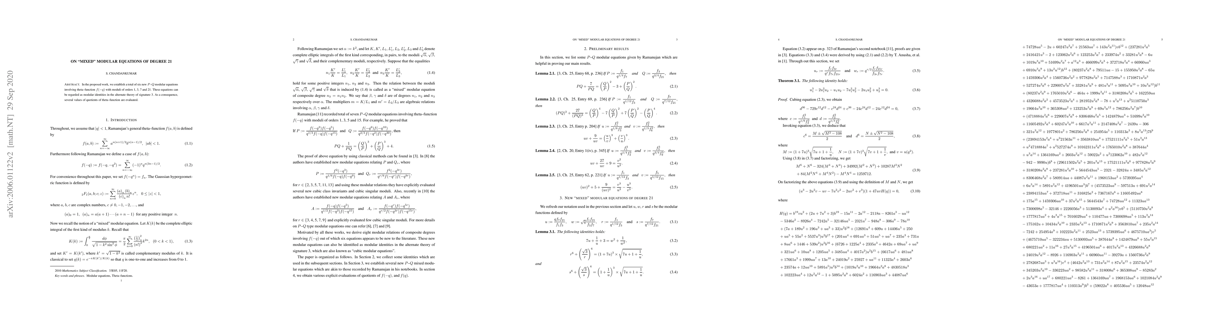 In the proposed work, we establish a total of six new $P$--$Q$ modular equations involving theta--function $f(-q)$ with moduli of orders 1, 3, 7 and 21.These equations can be regarded as modular identities in the alternate theory of signature 3. As a consequence, several values of quotients of theta--function are evaluated.