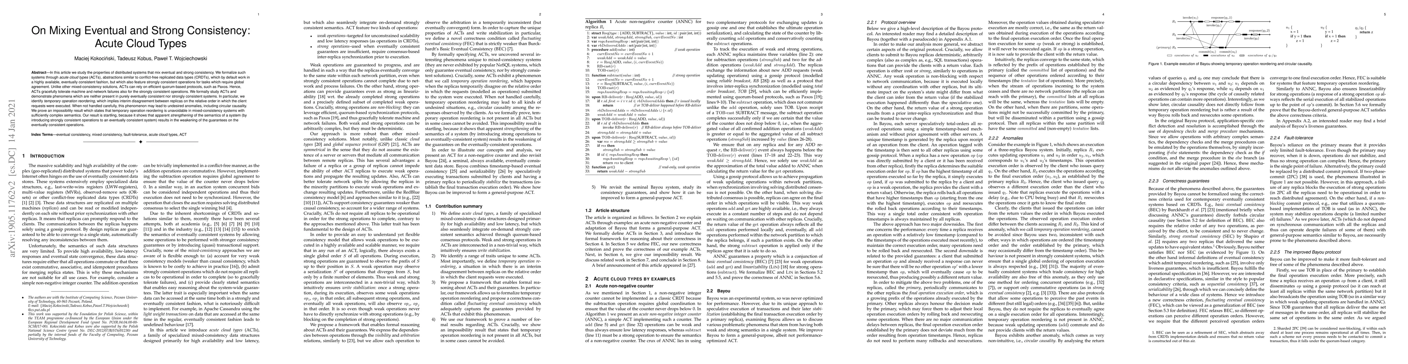 The paper introduces Acute Cloud Types (ACTs), a framework for distributed systems that mix eventual and strong consistency. ACTs are formalized using quorum-based protocols like Paxos, ensuring availability and agreement for strongly consistent operations.