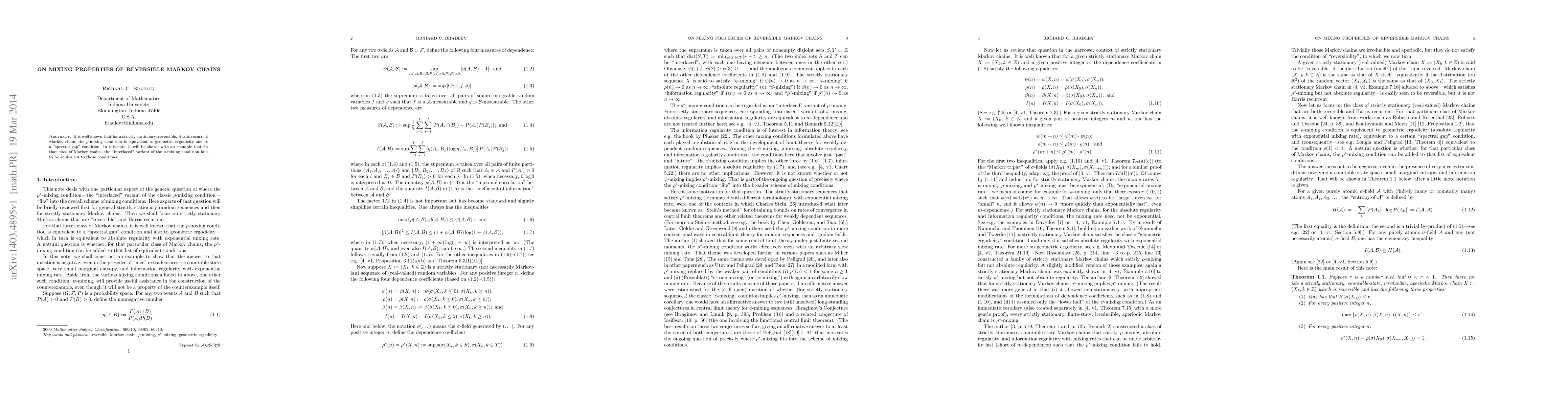 This paper shows that the interlaced version of the rho-mixing condition is not equivalent to geometric ergodicity or spectral gap in reversible Markov chains, contradicting a known equivalence.