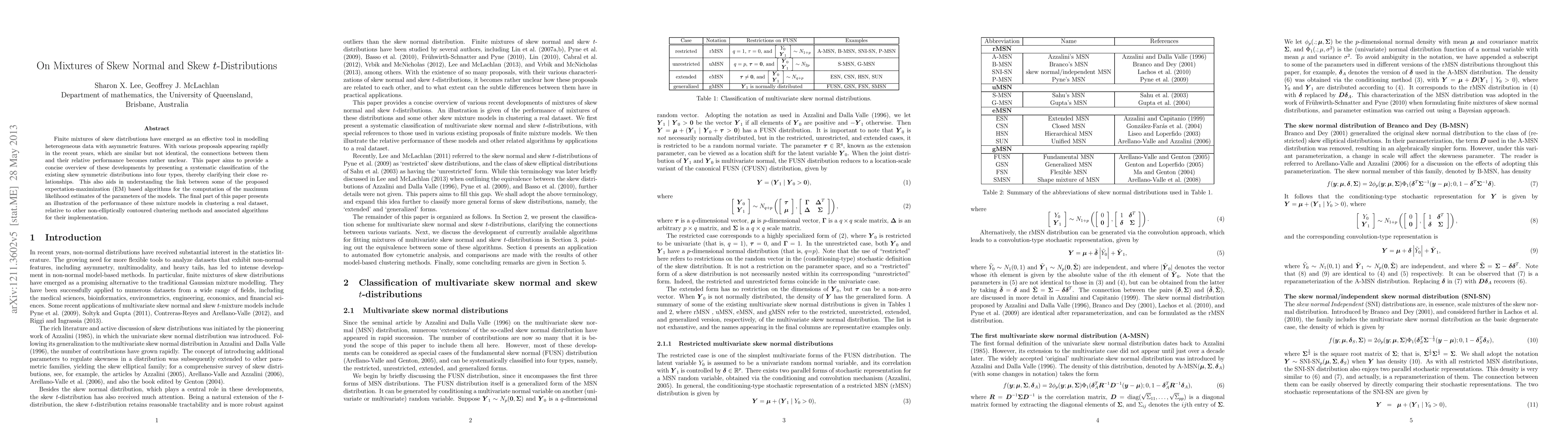 Finite mixture of skew distributions have emerged as an effective tool in modelling heterogeneous data with asymmetric features. With various proposals appearing rapidly in the recent years, which are similar but not identical, the connections between them and their relative performance becomes rather unclear. This paper aims to provide a concise overview of these developments by presenting a systematic classification of the existing skew distributions into four types, thereby clarifying their close relationships. This also aids in understanding the link between some of the proposed expectation-maximization (EM) based algorithms for the computation of the maximum likelihood estimates of the parameters of the models. The final part of this paper presents an illustration of the performance of these mixture models in clustering a real dataset, relative to other non-elliptically contoured clustering methods and associated algorithms for their implementation.