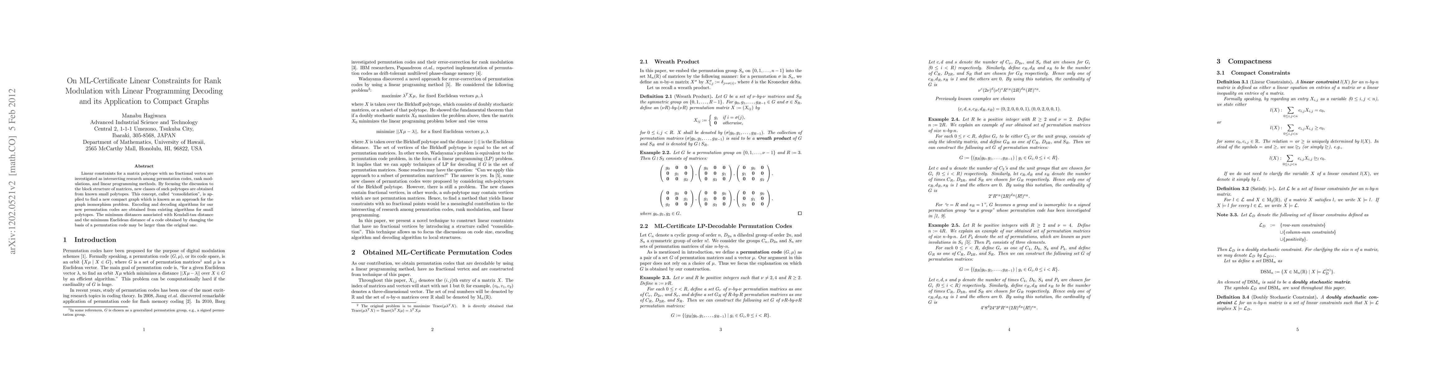 Linear constraints for a matrix polytope with no fractional vertex are investigated as intersecting research among permutation codes, rank modulations, and linear programming methods. By focusing the discussion to the block structure of matrices, new classes of such polytopes are obtained from known small polytopes. This concept, called "consolidation", is applied to find a new compact graph which is known as an approach for the graph isomorphism problem. Encoding and decoding algorithms for our new permutation codes are obtained from existing algorithms for small polytopes. The minimum distances associated with Kendall-tau distance and the minimum Euclidean distance of a code obtained by changing the basis of a permutation code may be larger than the original one.
