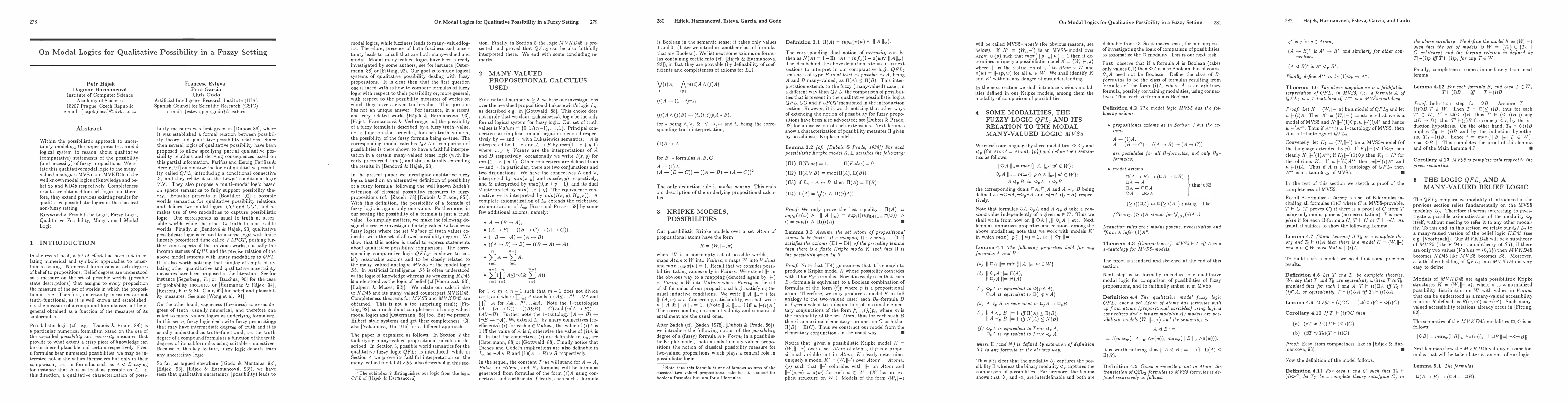 The paper develops a modal logic system to reason about qualitative possibilities within a fuzzy setting, extending classical results to many-valued logics MVS5 and MVKD45, and proving completeness for these new logics. This work enhances the possibilistic approach to uncertainty modeling.