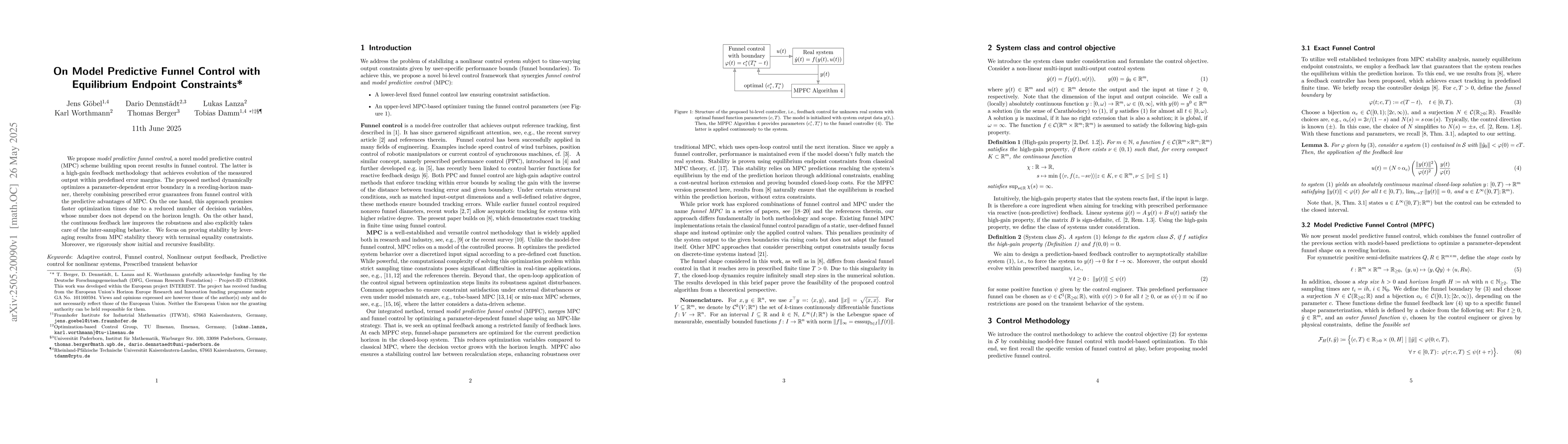 This paper introduces model predictive funnel control, a novel method combining funnel control's error guarantees with MPC's predictive advantages, promising faster optimization times and improved robustness.