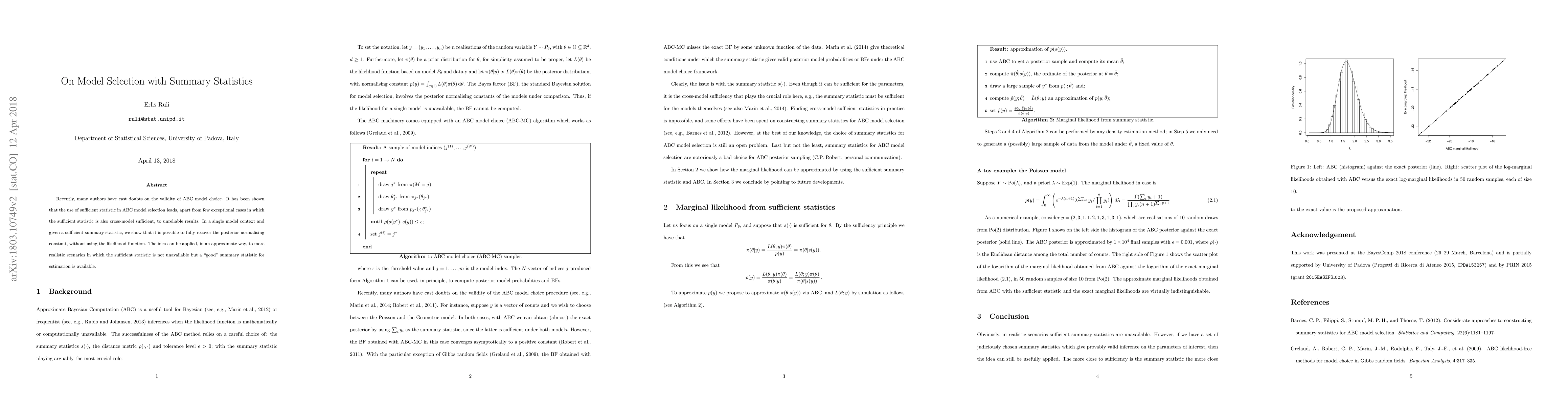 Recently, many authors have cast doubts on the validity of ABC model choice. It has been shown that the use of sufficient statistic in ABC model selection leads, apart from few exceptional cases in which the sufficient statistic is also cross-model sufficient, to unreliable results. In a single model context and given a sufficient summary statistic, we show that it is possible to fully recover the posterior normalising constant, without using the likelihood function. The idea can be applied, in an approximate way, to more realistic scenarios in which the sufficient statistic is not unavailable but a "good" summary statistic for estimation is available.