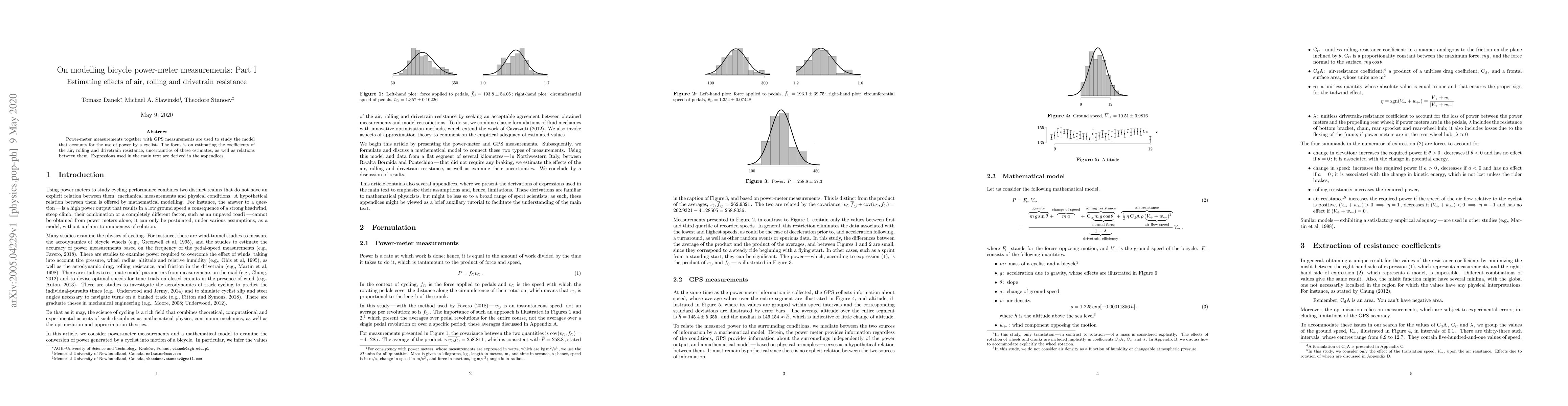 Power-meter measurements together with GPS measurements are used to study the model that accounts for the use of power by a cyclist. The focus is on estimating the coefficients of the air, rolling and drivetrain resistance, uncertainties of these estimates, as well as relations between them. Expressions used in the main text are derived in the appendices.