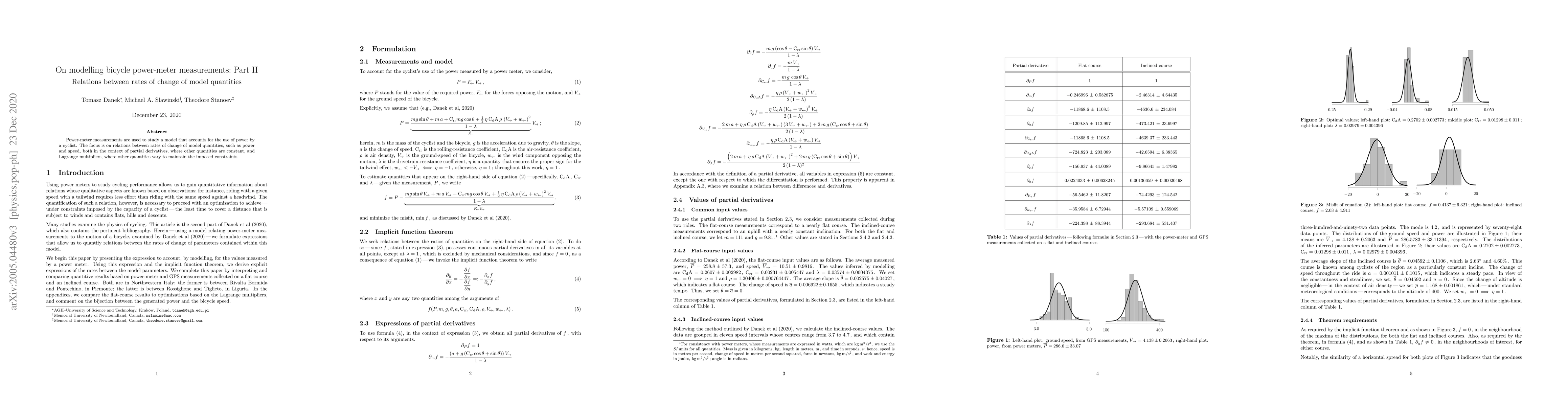 Power-meter measurements are used to study a model that accounts for the use of power by a cyclist. The focus is on relations between rates of change of model quantities, such as power and speed, both in the context of partial derivatives, where other quantities are constant, and Lagrange multipliers, where other quantities vary to maintain the imposed constraints.