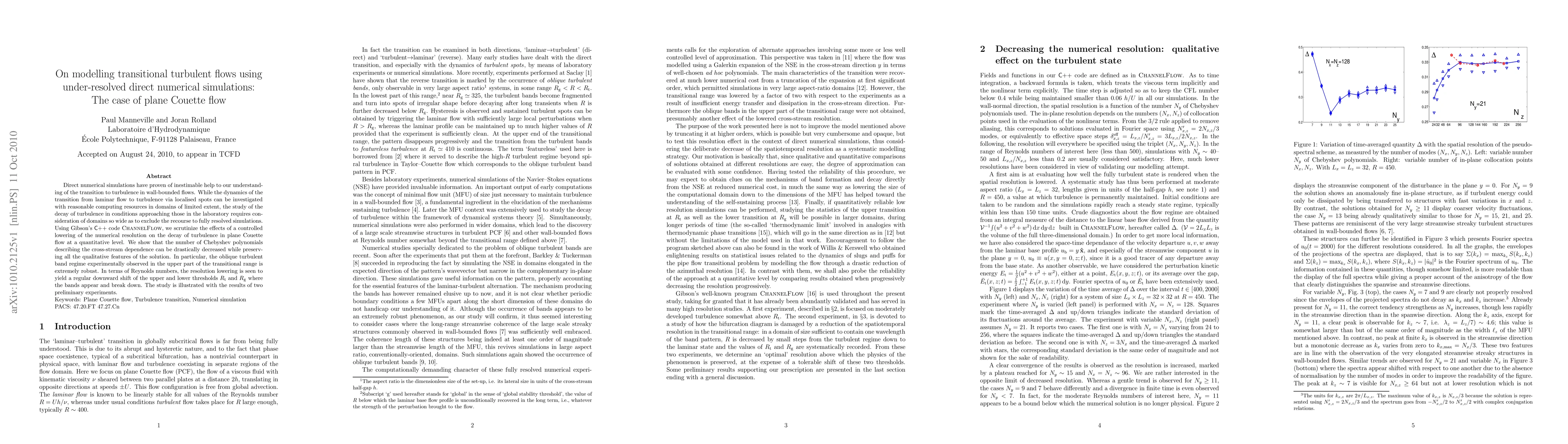 Researchers used under-resolved direct numerical simulations to study turbulence in a plane Couette flow, finding that lower resolution can preserve key features of the solution while reducing computational resources.