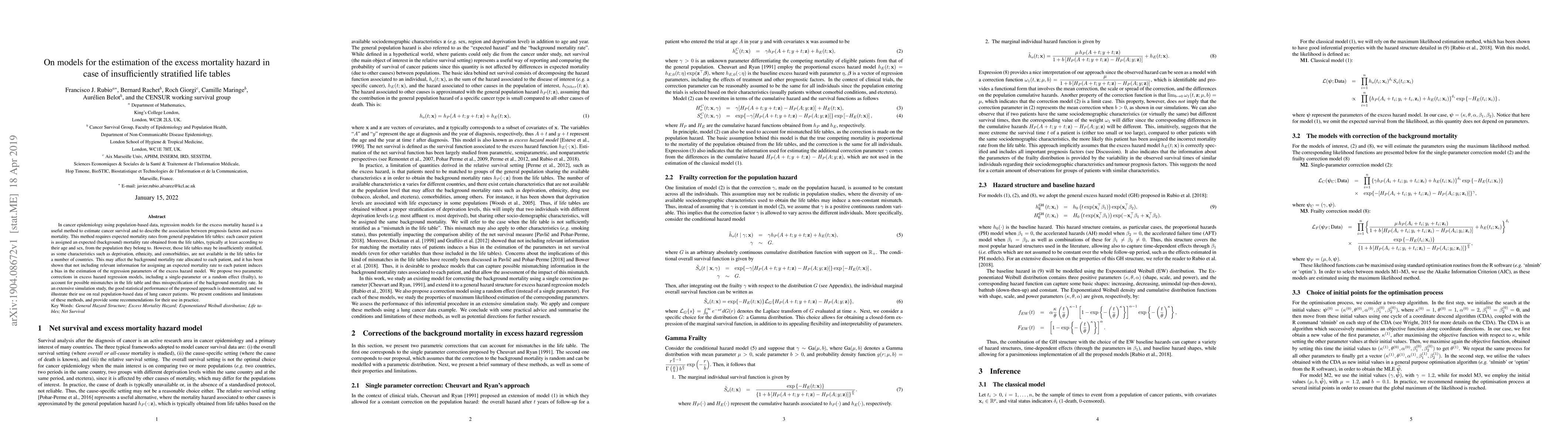 This paper proposes two parametric corrections in excess hazard regression models to address the bias in estimating cancer survival when life tables are insufficiently stratified, lacking detailed factors like deprivation and ethnicity. The proposed methods, validated through simulations and real lung cancer data, aim to correct for mismatches in life table data.