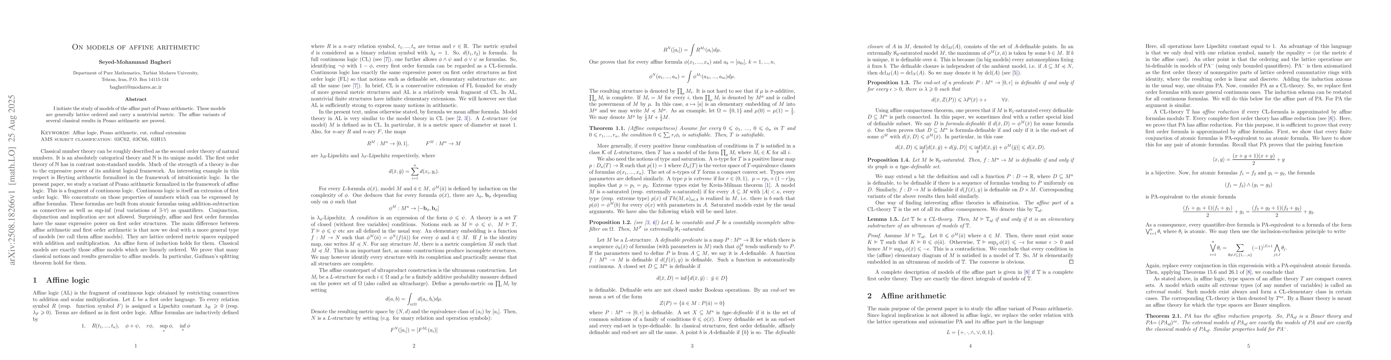 I initiate the study of models of the affine part of Peano arithmetic. These models are generally lattice ordered and carry a nontrivial metric. The affine variants of several classical results in Peano arithmetic are proved.