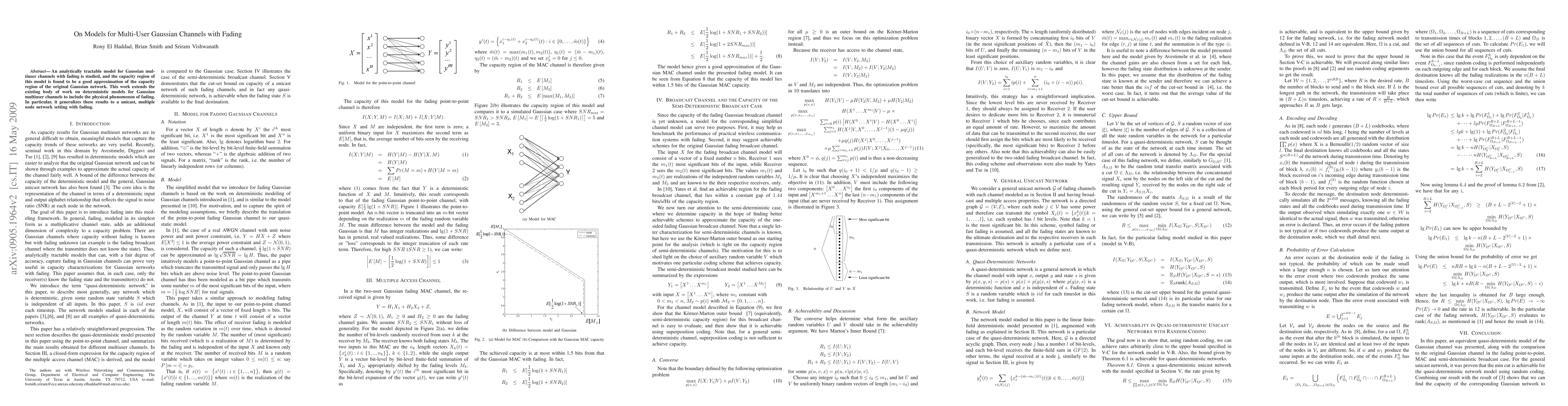 This research presents a tractable model for Gaussian multiuser channels with fading, approximating the original network's capacity region. It extends deterministic models to incorporate fading in a unicast, multiple-node network setting.