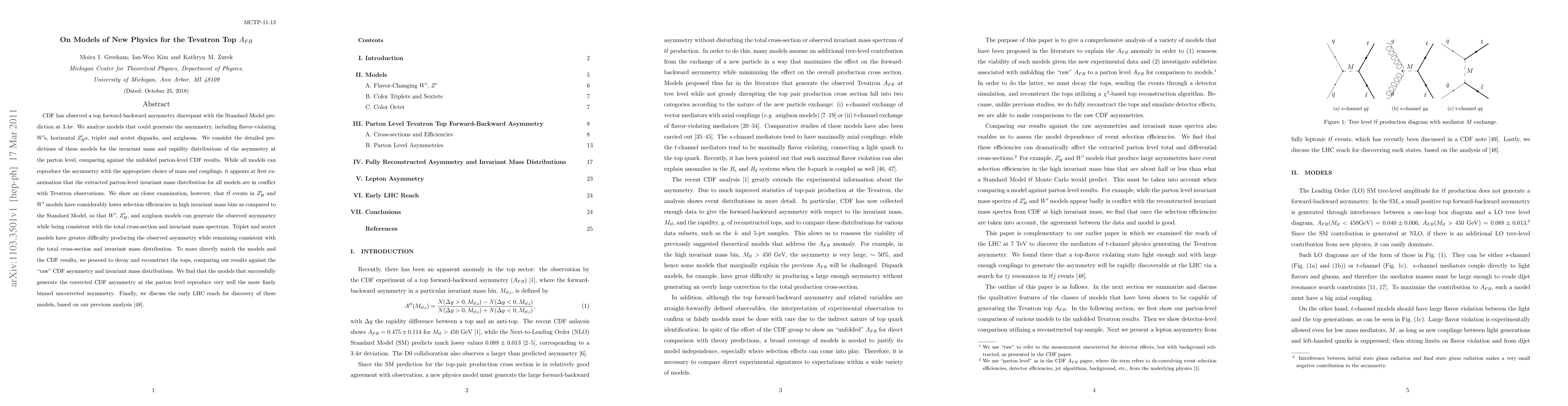 CDF has observed a top forward-backward asymmetry discrepant with the Standard Model prediction at 3.4 \sigma. We analyze models that could generate the asymmetry, including flavor-violating W's, horizontal Z'_Hs, triplet and sextet diquarks, and axigluons. We consider the detailed predictions of these models for the invariant mass and rapidity distributions of the asymmetry at the parton level, comparing against the unfolded parton-level CDF results. While all models can reproduce the asymmetry with the appropriate choice of mass and couplings, it appears at first examination that the extracted parton-level invariant mass distribution for all models are in conflict with Tevatron observations. We show on closer examination, however, that t tbar events in Z'_H and W' models have considerably lower selection efficiencies in high invariant mass bins as compared to the Standard Model, so that W', Z'_H, and axigluon models can generate the observed asymmetry while being consistent with the total cross-section and invariant mass spectrum. Triplet and sextet models have greater difficulty producing the observed asymmetry while remaining consistent with the total cross-section and invariant mass distribution. To more directly match the models and the CDF results, we proceed to decay and reconstruct the tops, comparing our results against the "raw" CDF asymmetry and invariant mass distributions. We find that the models that successfully generate the corrected CDF asymmetry at the parton level reproduce very well the more finely binned uncorrected asymmetry. Finally, we discuss the early LHC reach for discovery of these models, based on our previous analysis [arXiv:1102.0018].