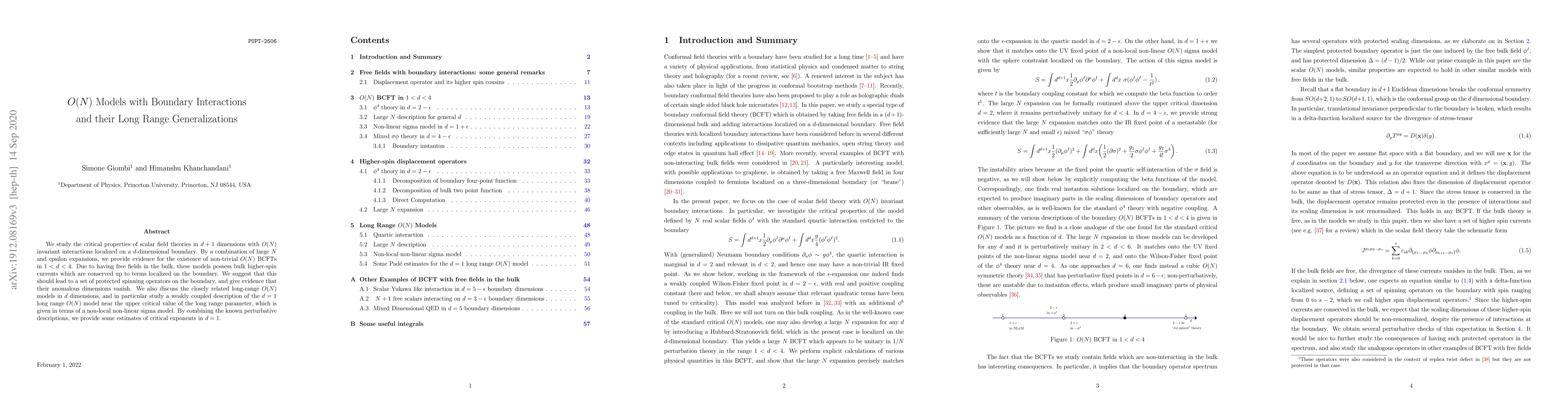 with $O(N)$ invariant interactions localized on a $d$-dimensional boundary. By