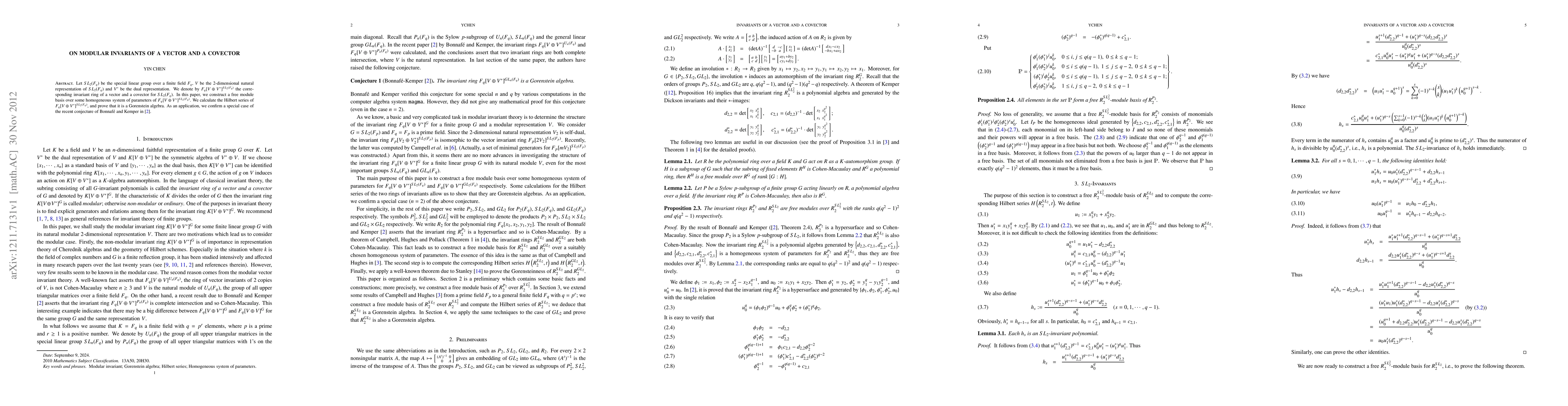 Let $SL_{2}(F_{q})$ be the special linear group over a finite field $F_{q}$, $V$ be the 2-dimensional natural representation of $SL_{2}(F_{q})$ and $V^{\ast}$ be the dual representation. We denote by $F_{q}[V\oplus V^{\ast}]^{SL_{2}(F_{q})}$ the corresponding invariant ring of a vector and a covector for $SL_{2}(F_{q})$. In this paper, we construct a free module basis over some homogeneous system of parameters of $F_{q}[V\oplus V^{\ast}]^{SL_{2}(F_{q})}$. We calculate the Hilbert series of $F_{q}[V\oplus V^{\ast}]^{SL_{2}(F_{q})}$, and prove that it is a Gorenstein algebra. As an application, we confirm a special case of the recent conjecture of Bonnafe and Kemper in 2011.