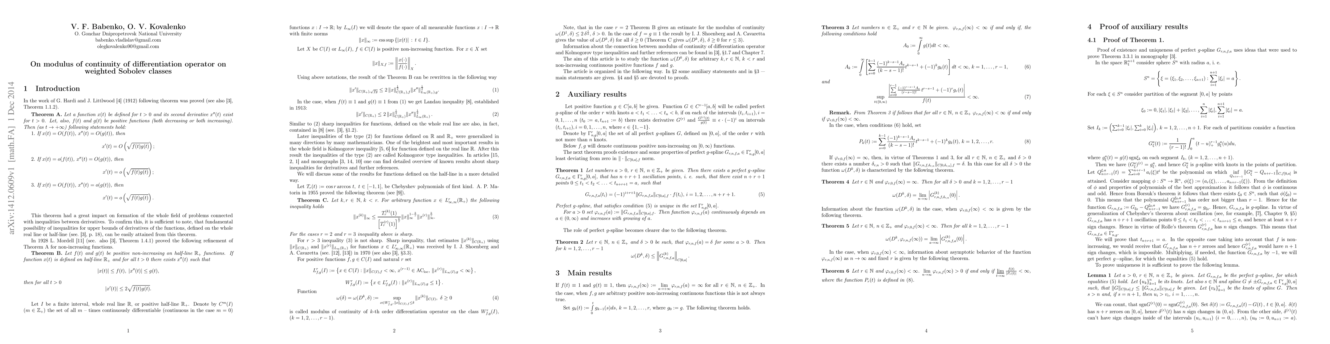 In this paper we investigate the modulus of continuity of differential operator of order $k$, $k\in\mathbb{N}$, on the classes of functions defined on half-line that have positive non-increasing continuous majorants of functions and their higher derivatives.