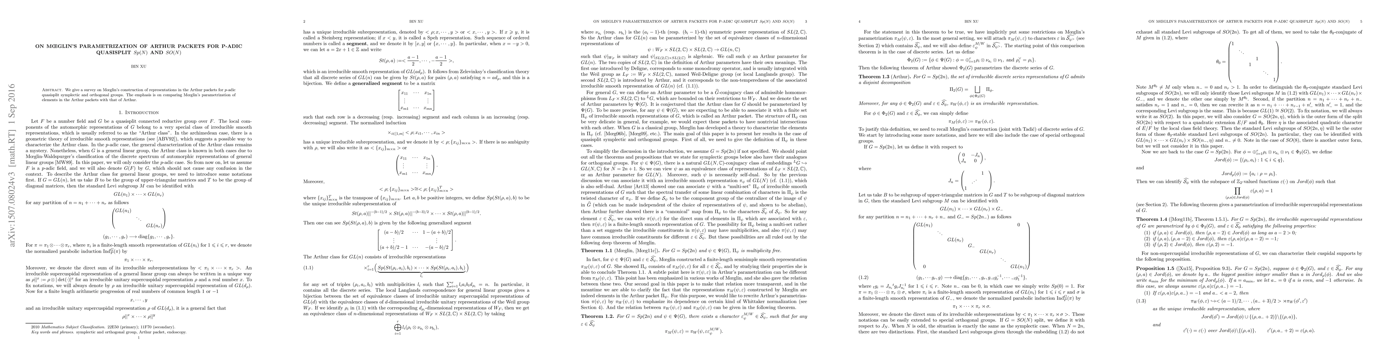 This paper surveys Mœglin's construction of representations in Arthur packets for $p$-adic quasisplit symplectic and orthogonal groups, focusing on comparing Mœglin's parametrization with Arthur's.
