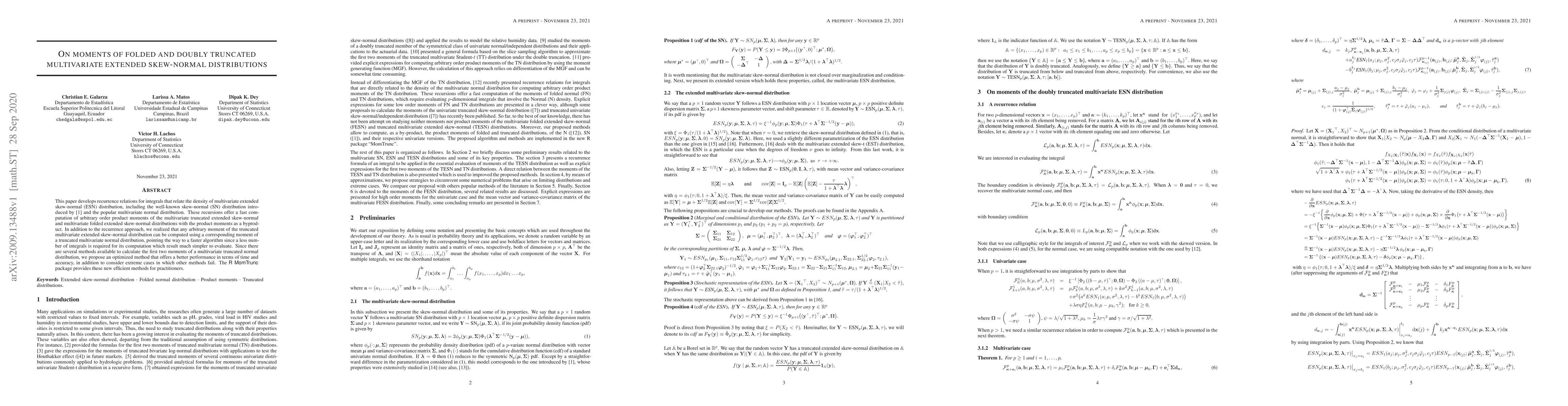 This paper develops recurrence relations for the density of multivariate extended skew-normal distributions, enabling fast computation of product moments for truncated and folded variants. It also proposes an optimized method for calculating moments of truncated multivariate normal distributions, offering better performance and accuracy.