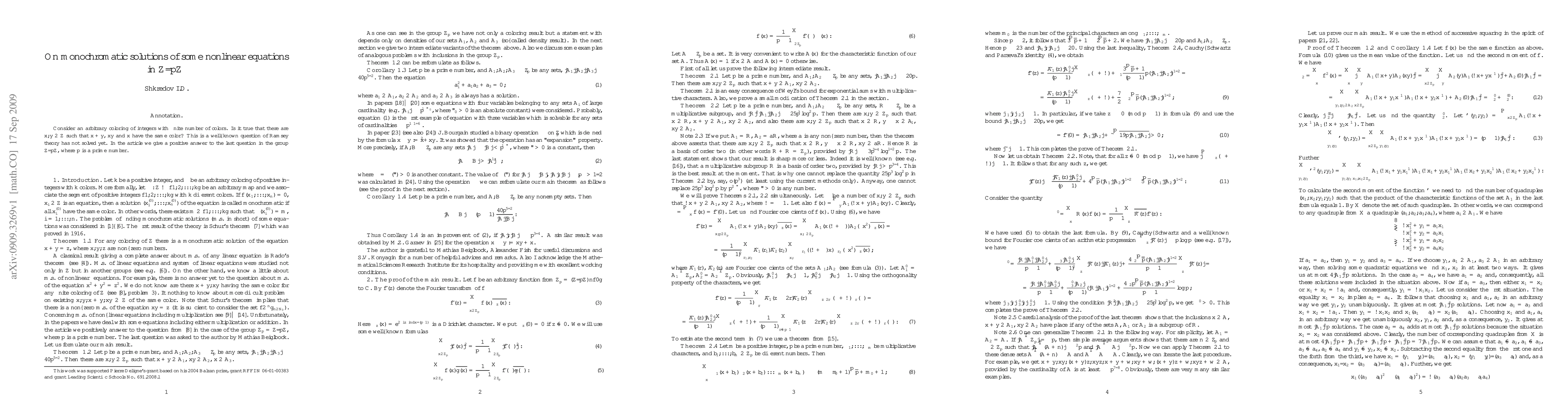 Consider an arbitrary coloring of integers with finite number of colors. Is it true that there are x, y such that x + y, xy and x have the same color? This is a well-known question of Ramsey theory has not solved yet. In the article we give a positive answer to the last question in the group Z/pZ, where p is a prime number.