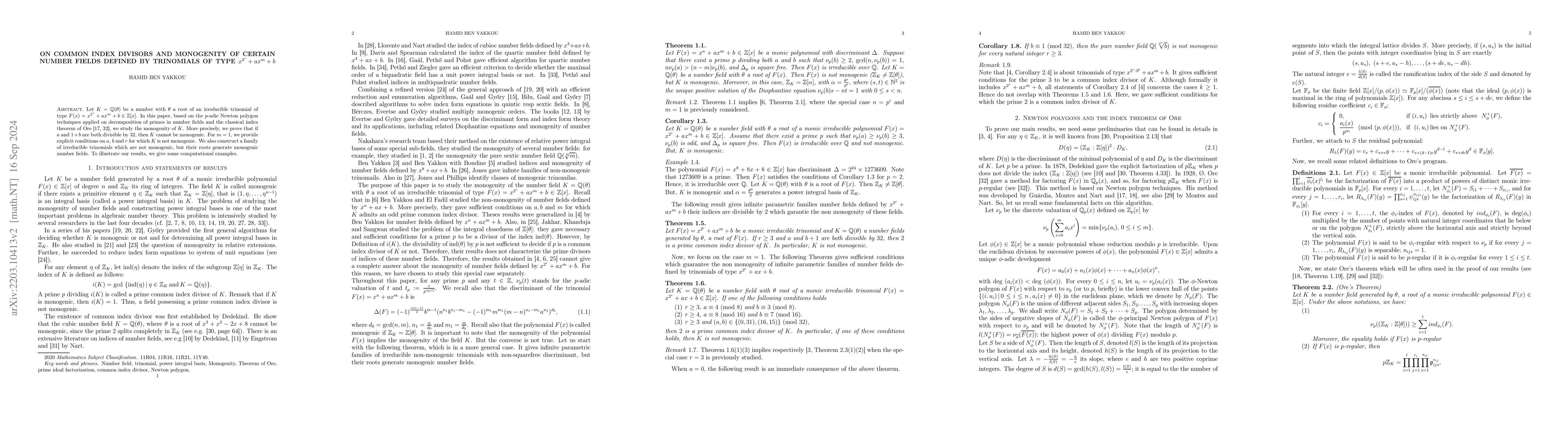 This paper investigates the monogenity of number fields defined by monic irreducible trinomials of the form $x^{2^r} + ax^m + b$, finding conditions under which the fields are not monogenic when $m=1$. It also presents a family of such trinomials generating monogenic fields despite being non-monogenic themselves, supported by computational examples.
