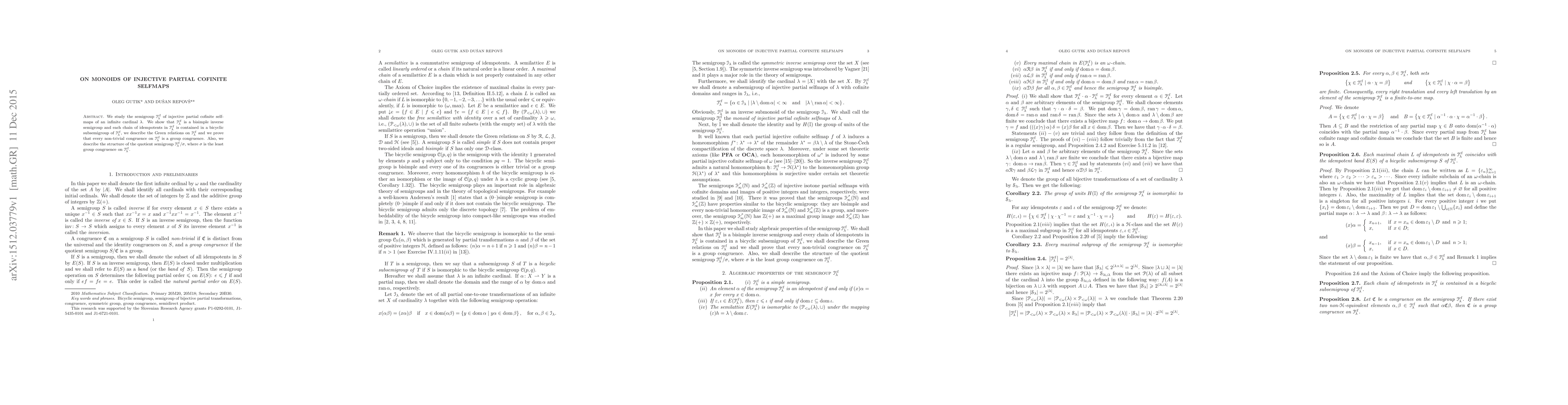 We study the semigroup $\mathscr{I}^{\mathrm{cf}}_\lambda$ of injective partial cofinite selfmaps of an infinite cardinal $\lambda$. We show that $\mathscr{I}^{\mathrm{cf}}_\lambda$ is a bisimple inverse semigroup and each chain of idempotents in $\mathscr{I}^{\mathrm{cf}}_\lambda$ is contained in a bicyclic subsemigroup of $\mathscr{I}^{\mathrm{cf}}_\lambda$, we describe the Green relations on $\mathscr{I}^{\mathrm{cf}}_\lambda$ and we prove that every non-trivial congruence on $\mathscr{I}^{\mathrm{cf}}_\lambda$ is a group congruence. Also, we describe the structure of the quotient semigroup $\mathscr{I}^{\mathrm{cf}}_\lambda/\sigma$, where $\sigma$ is the least group congruence on $\mathscr{I}^{\mathrm{cf}}_\lambda$.