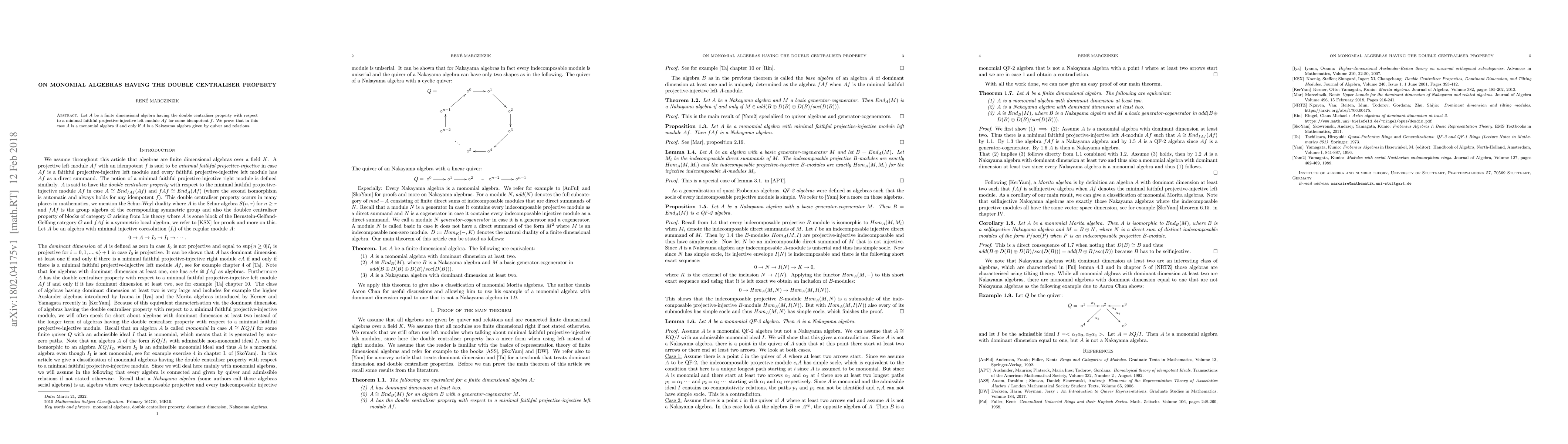 Summary: This paper proves that a finite-dimensional algebra $A$ with the double centraliser property relative to a minimal faithful projective-injective module $Af$ is monomial if and only if $A$ is a Nakayama algebra defined by a quiver and relations.