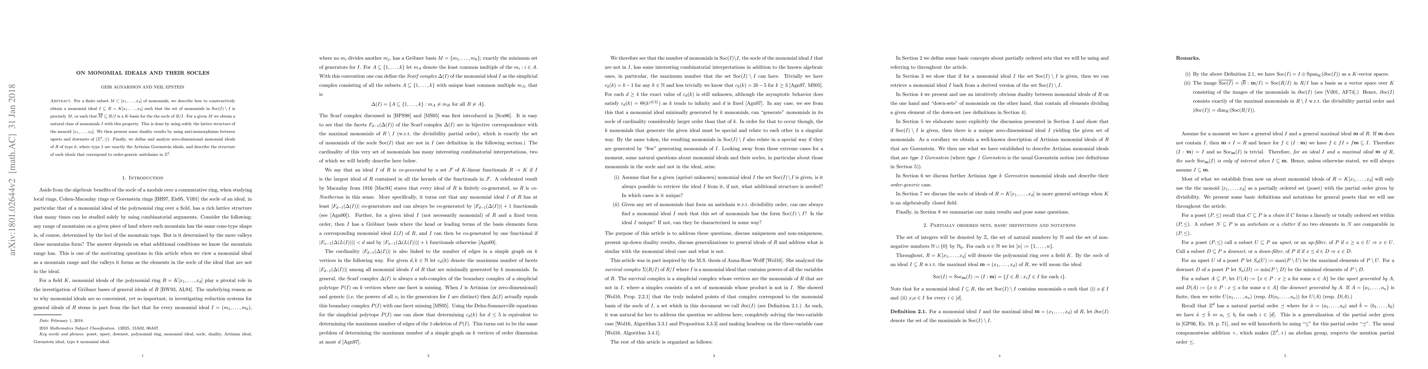 Researchers develop a method to construct monomial ideals based on a given subset of monomials, allowing for precise control over the socle of the ideal. This approach has implications for understanding zero-dimensional monomial ideals and their relationship to order-generic antichains in d-dimensional space.