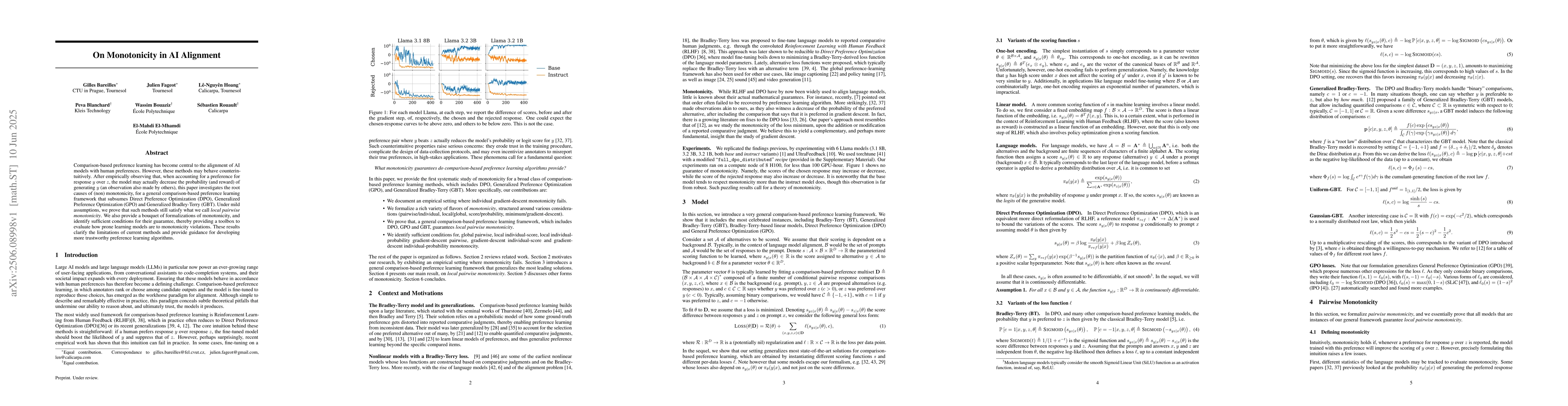 This paper examines why preference-based AI training methods sometimes behave unexpectedly, especially when models decrease the likelihood of preferred responses. It offers formal conditions to understand and improve the monotonicity of these methods, guiding the development of more reliable AI alignment techniques.