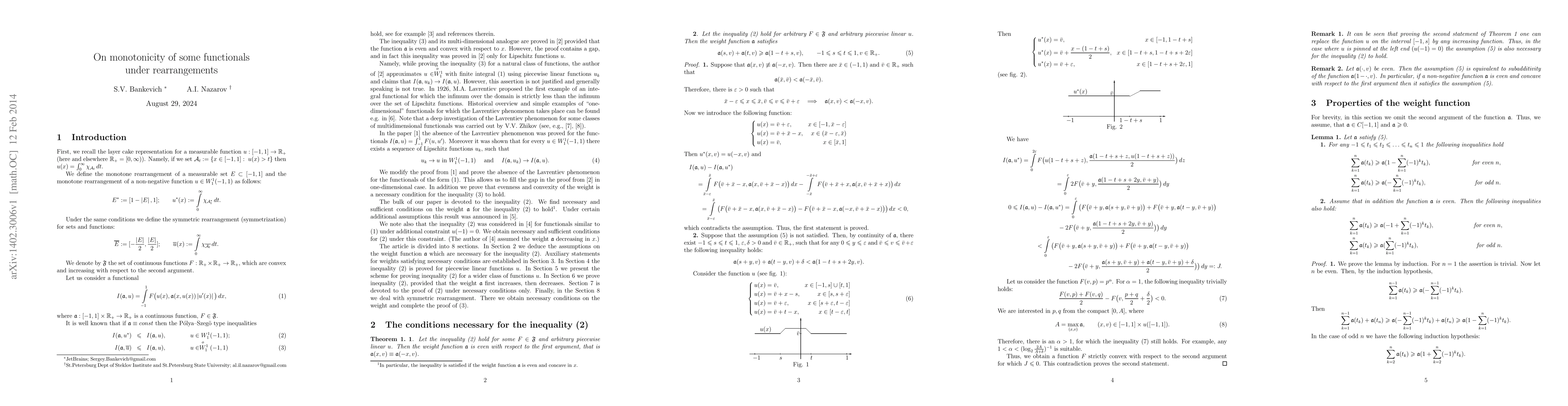 We consider the Polya--Szeg\"o type weighted inequality. We prove this inequality for monotone rearrangement and for Steiner's symmetrization.