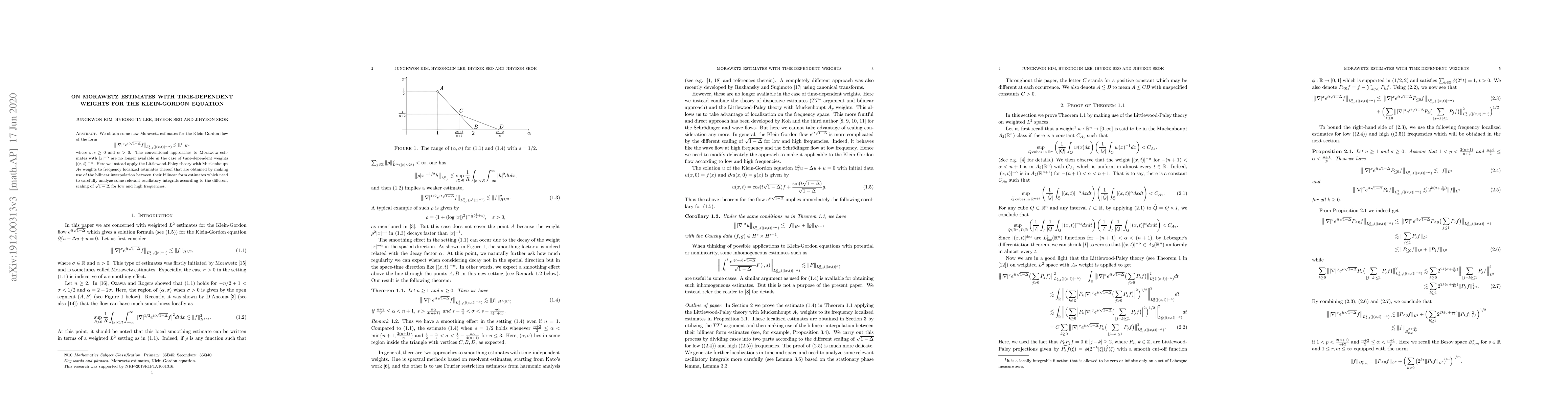 This paper presents new Morawetz estimates for the Klein-Gordon equation with time-dependent weights, utilizing Littlewood-Paley theory and Muckenhoupt $A_2$ weights to handle the frequency localized estimates. The approach requires careful analysis of oscillatory integrals due to the different scaling of $\sqrt{1-\Delta}$ across frequency ranges.