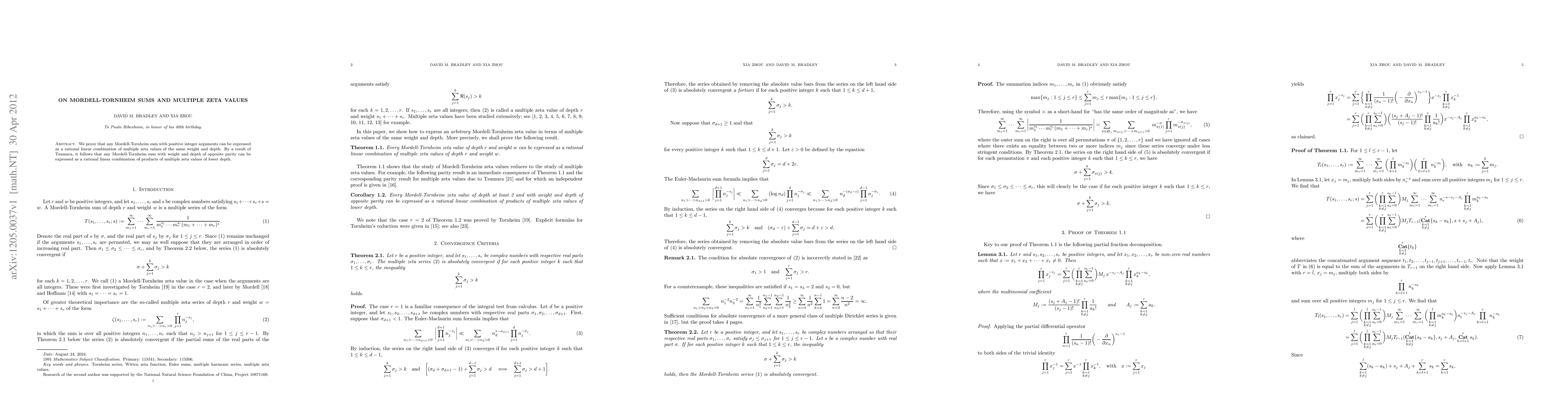 This paper establishes that Mordell-Tornheim sums with positive integer arguments can be represented as rational linear combinations of multiple zeta values of matching weight and depth. Additionally, it follows from Tsumura's result that sums with opposite parity weight and depth can be expressed as rational linear combinations of products of lower depth multiple zeta values.