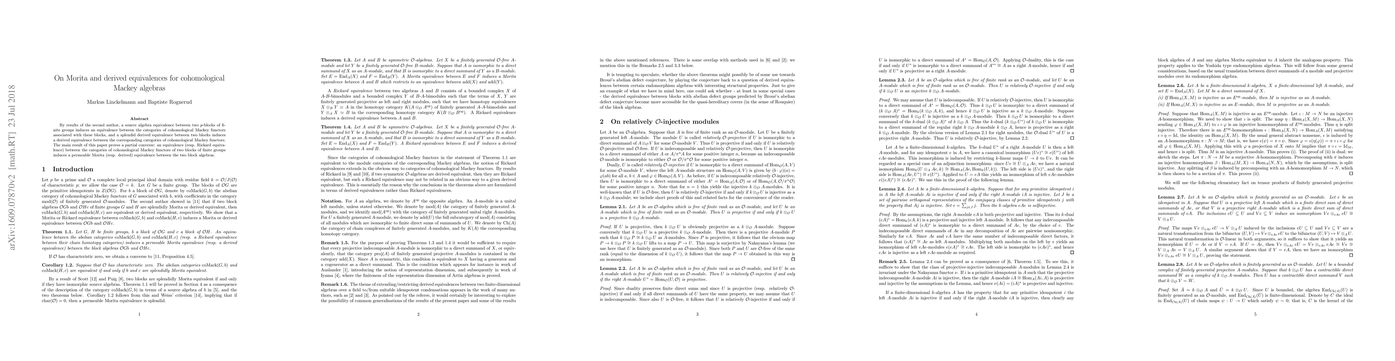 This paper demonstrates that an equivalence between the categories of cohomological Mackey functors of two $p$-blocks of finite groups induces a permeable Morita equivalence (or a Rickard equivalence leading to a derived equivalence) between the corresponding block algebras. This partially reverses prior results connecting source algebra equivalences and derived equivalences.